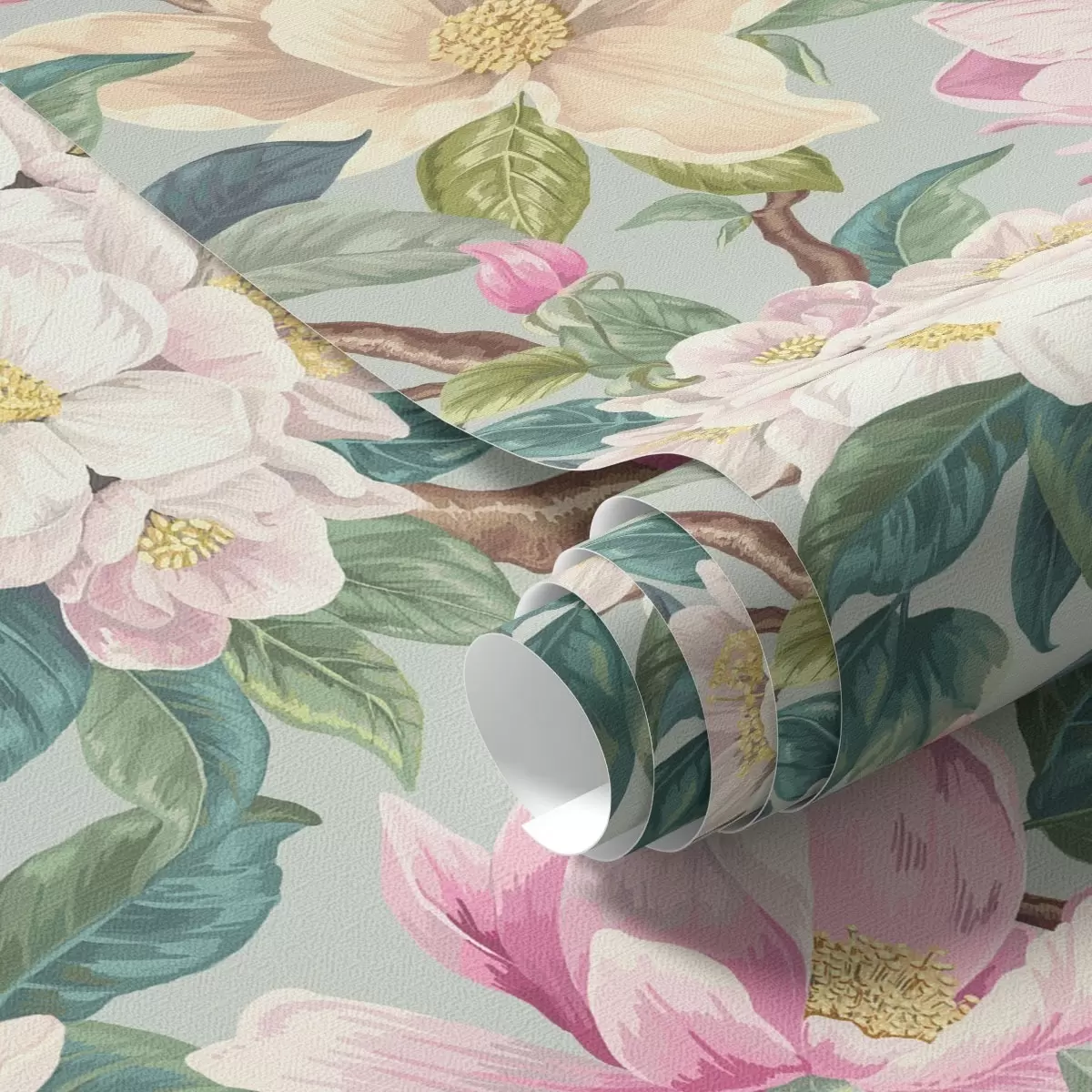 Fonds d'écran Magnolias et fleurs blanches sur fond gris menthe Nr. a00644