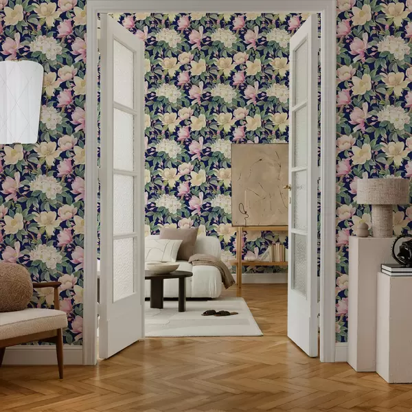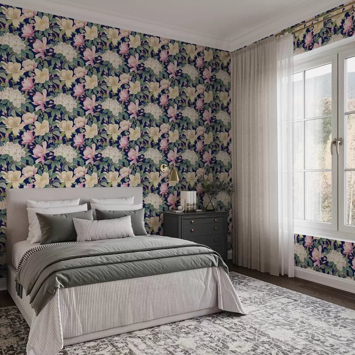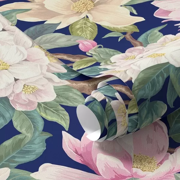 Fonds d'écran Magnolias et bourgeons sur fond bleu marine foncé Nr. a00644v1