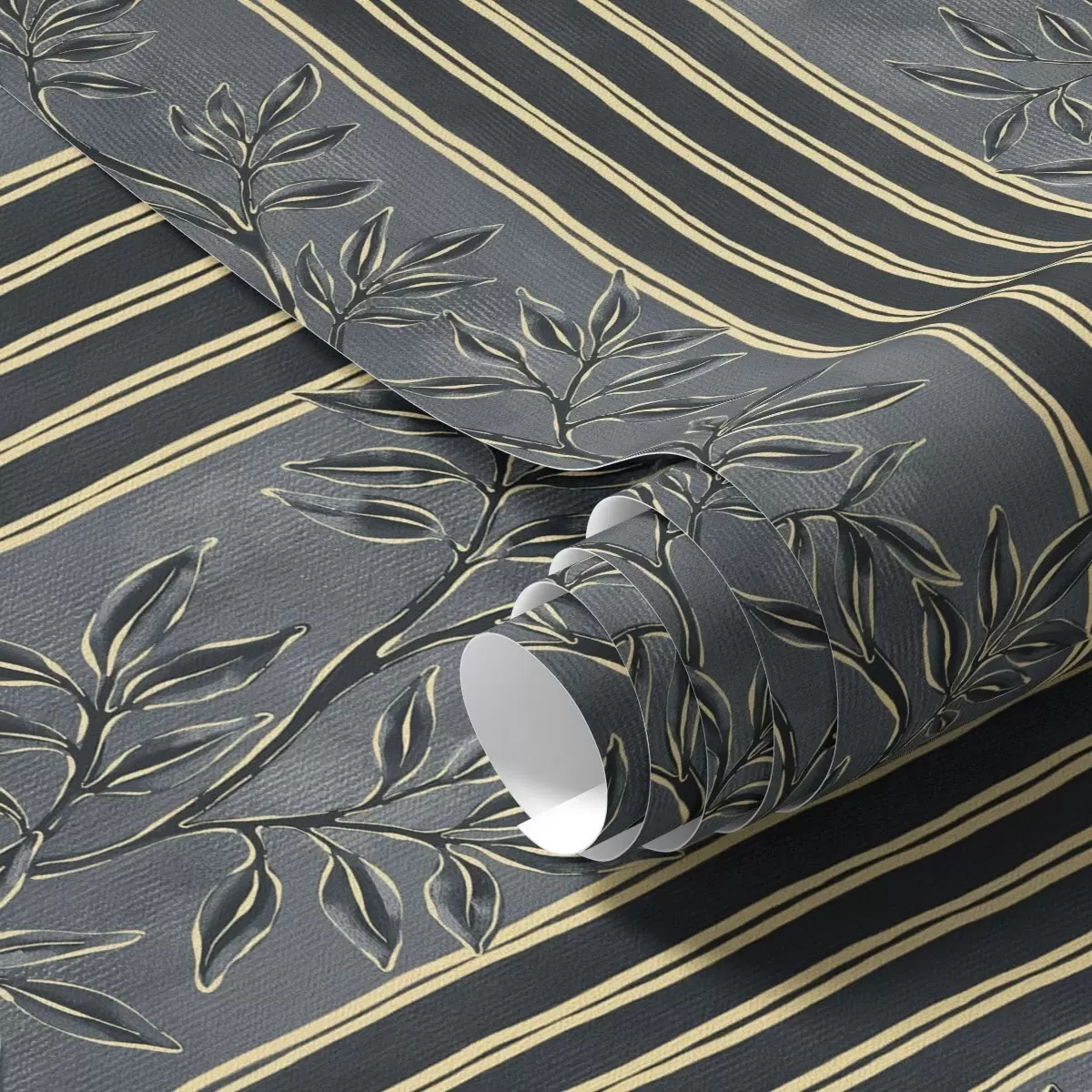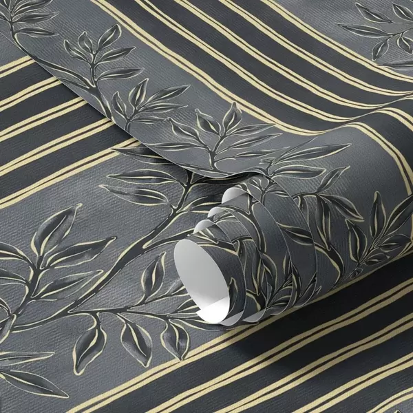 Fonds d'écran Rayures verticales avec motifs botaniques dans des tons sombres Nr. a00648