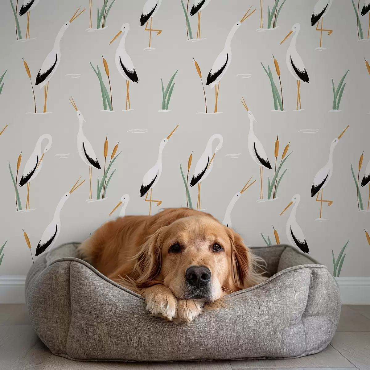 Fonds d'écran Hérons parmi les roseaux sur fond gris clair Nr. a00650
