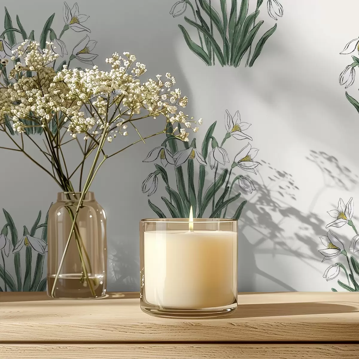 Fonds d'écran Perce-neige à feuilles vertes sur fond gris clair Nr. a00651v1
