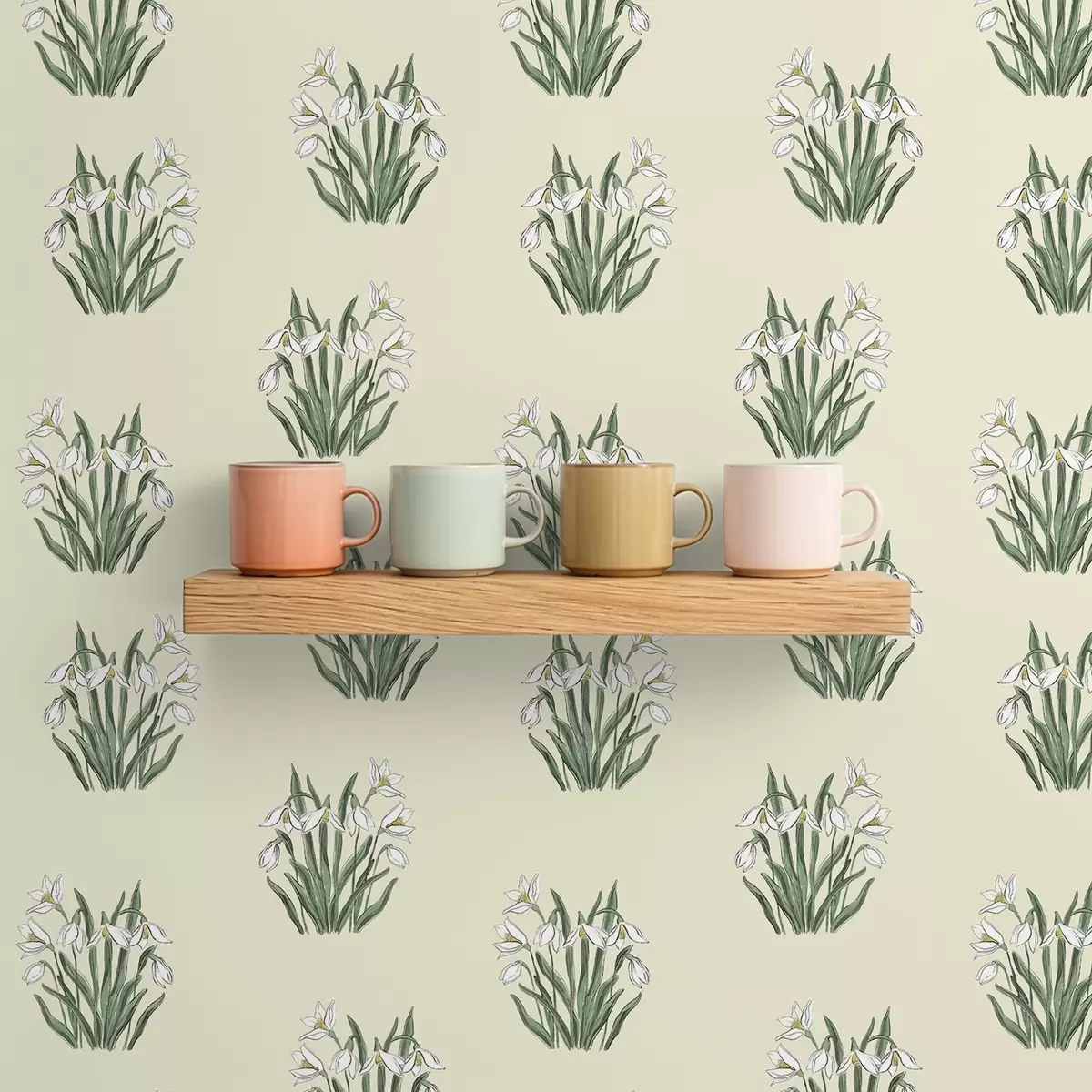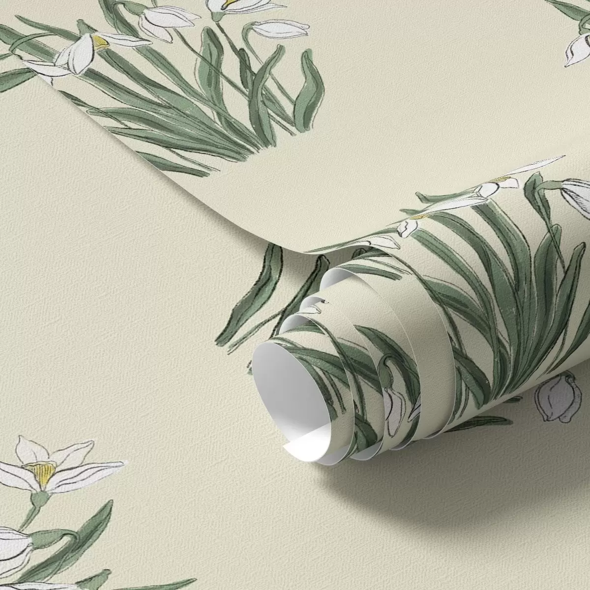 Fonds d'écran Perce-neige aux feuilles vertes sur fond crème Nr. a00651v2