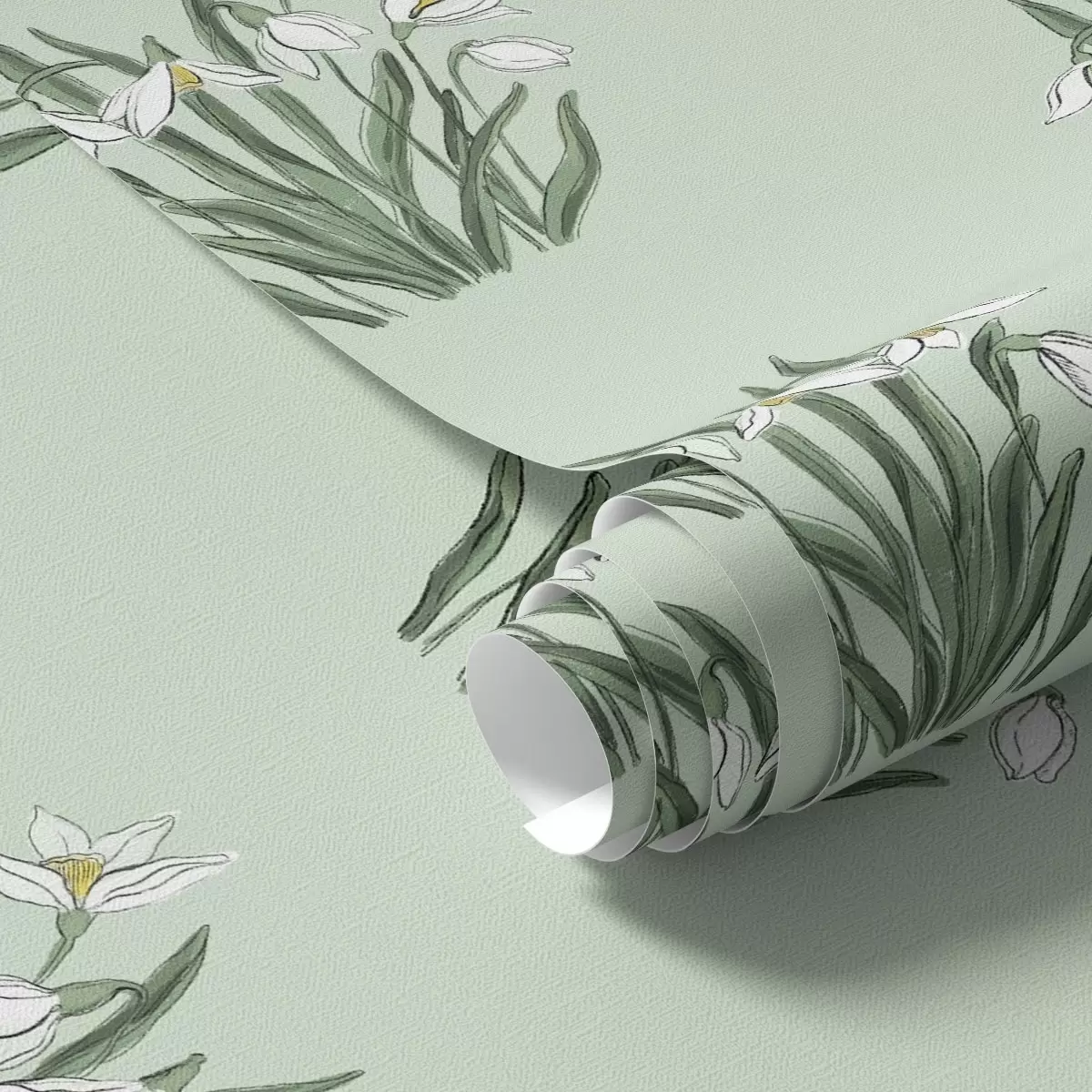 Fonds d'écran Perce-neige aux feuilles vertes sur fond jaune chaud Nr. a00651v3