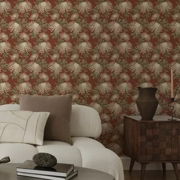 Fonds d'écran Chrysanthèmes crème sur fond terre cuite, style asiatique Nr. a00693