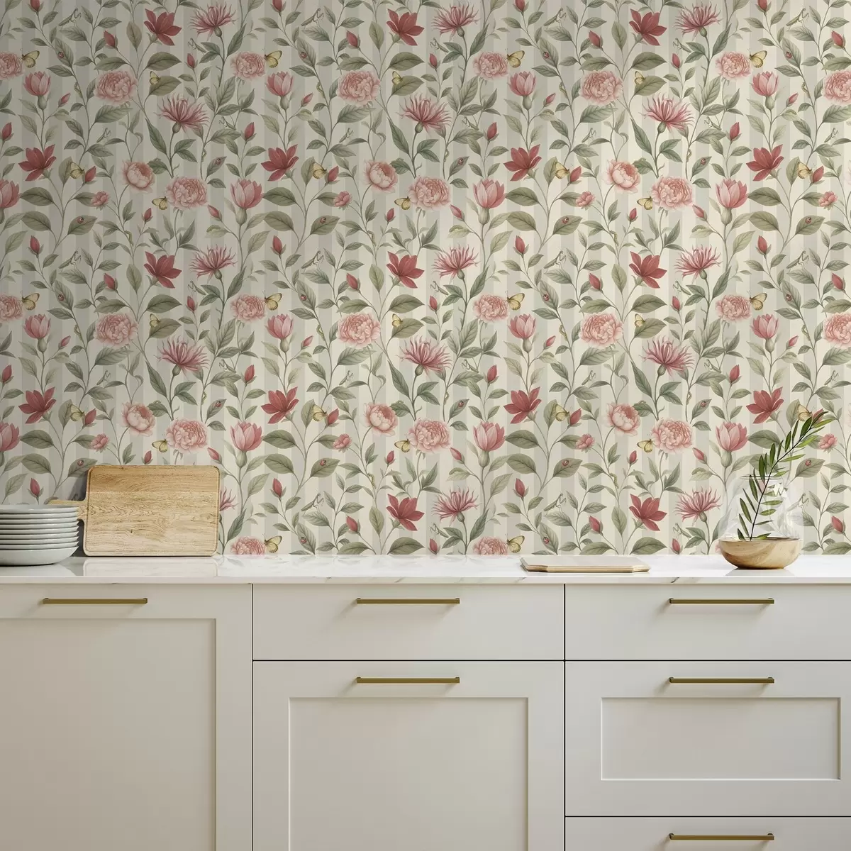 Fonds d'écran Tiges florales avec papillons sur fond clair Nr. a00698