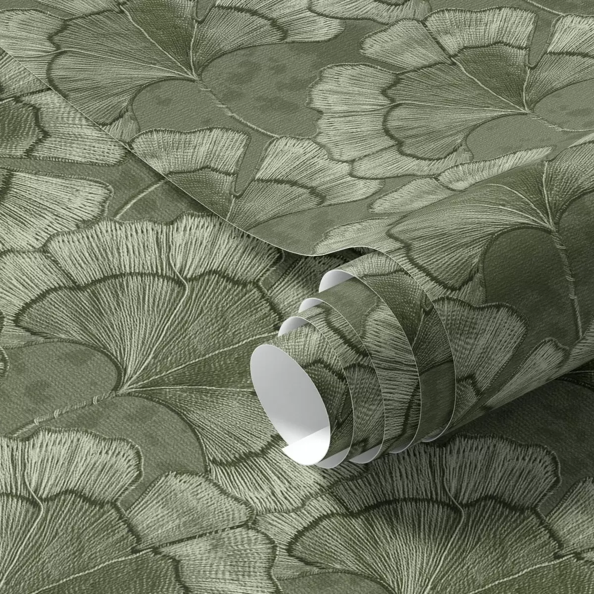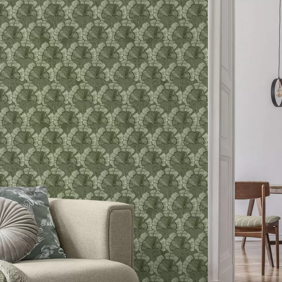 Fonds d'écran Motif graphique avec des ginkgos dans une palette de verts froids Nr. a00709