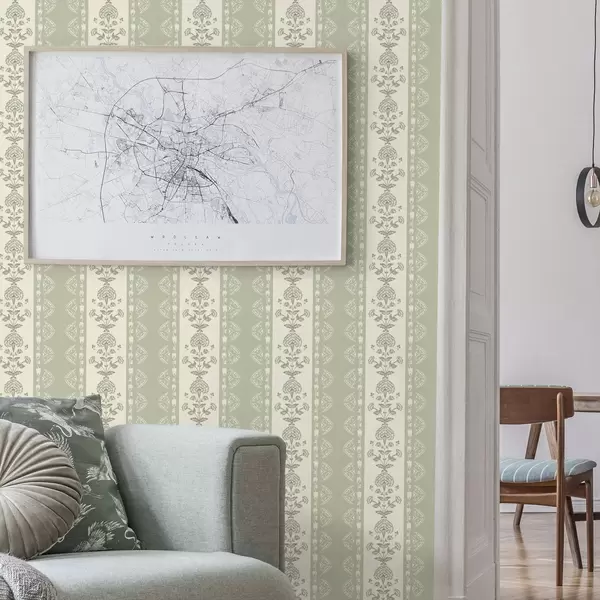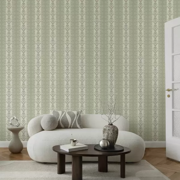 Fonds d'écran Ornement rayé avec colonnes florales dans les tons sauge Nr. a00719
