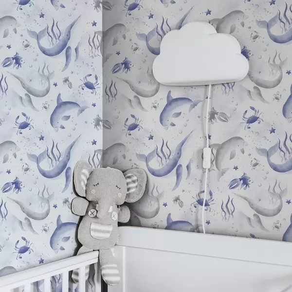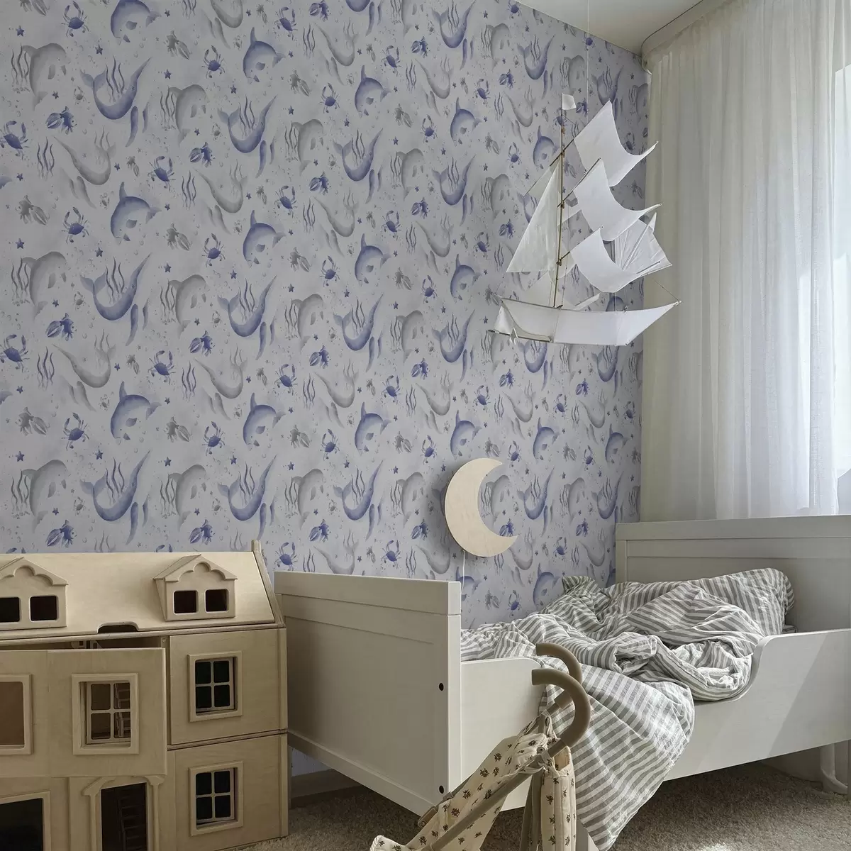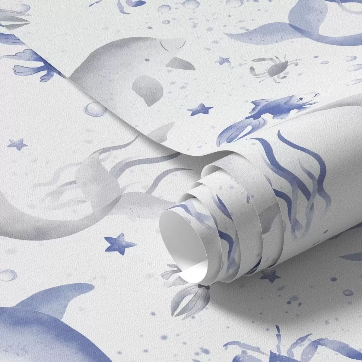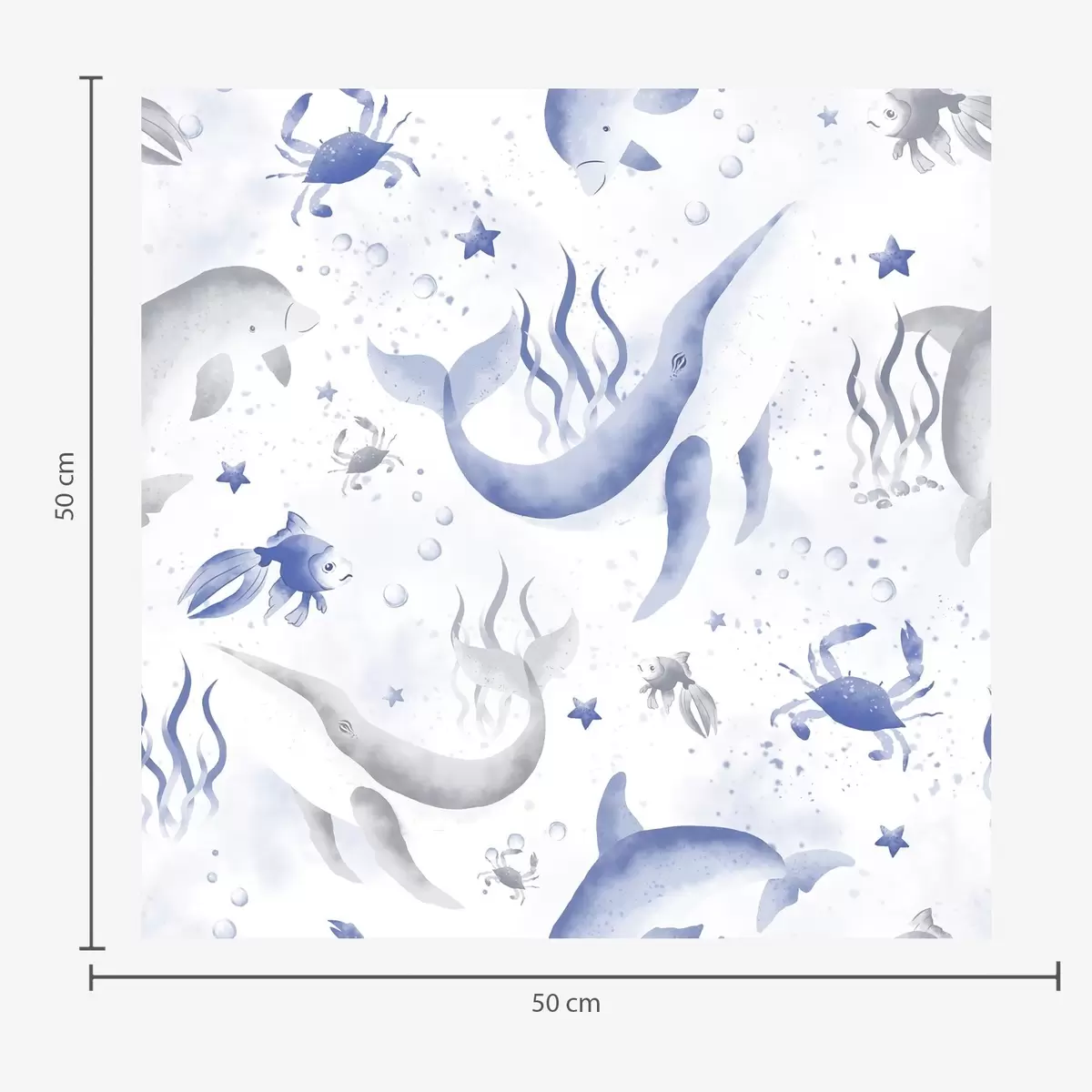 Fonds d'écran Baleines et dauphins marins dans des tons bleus sur fond blanc Nr. a00720v1