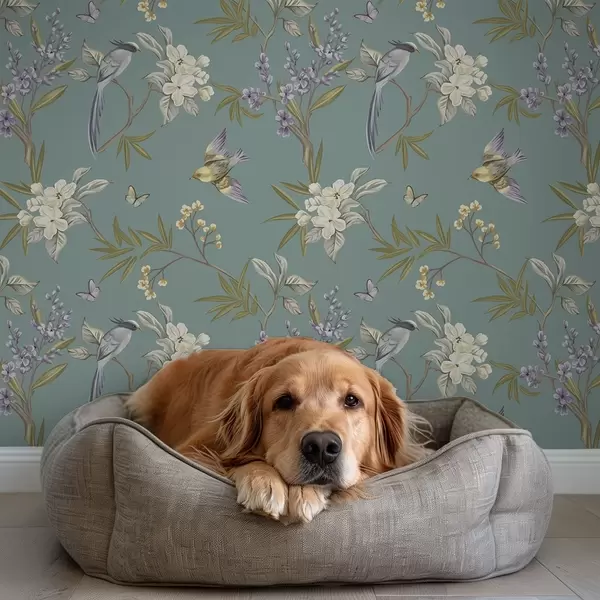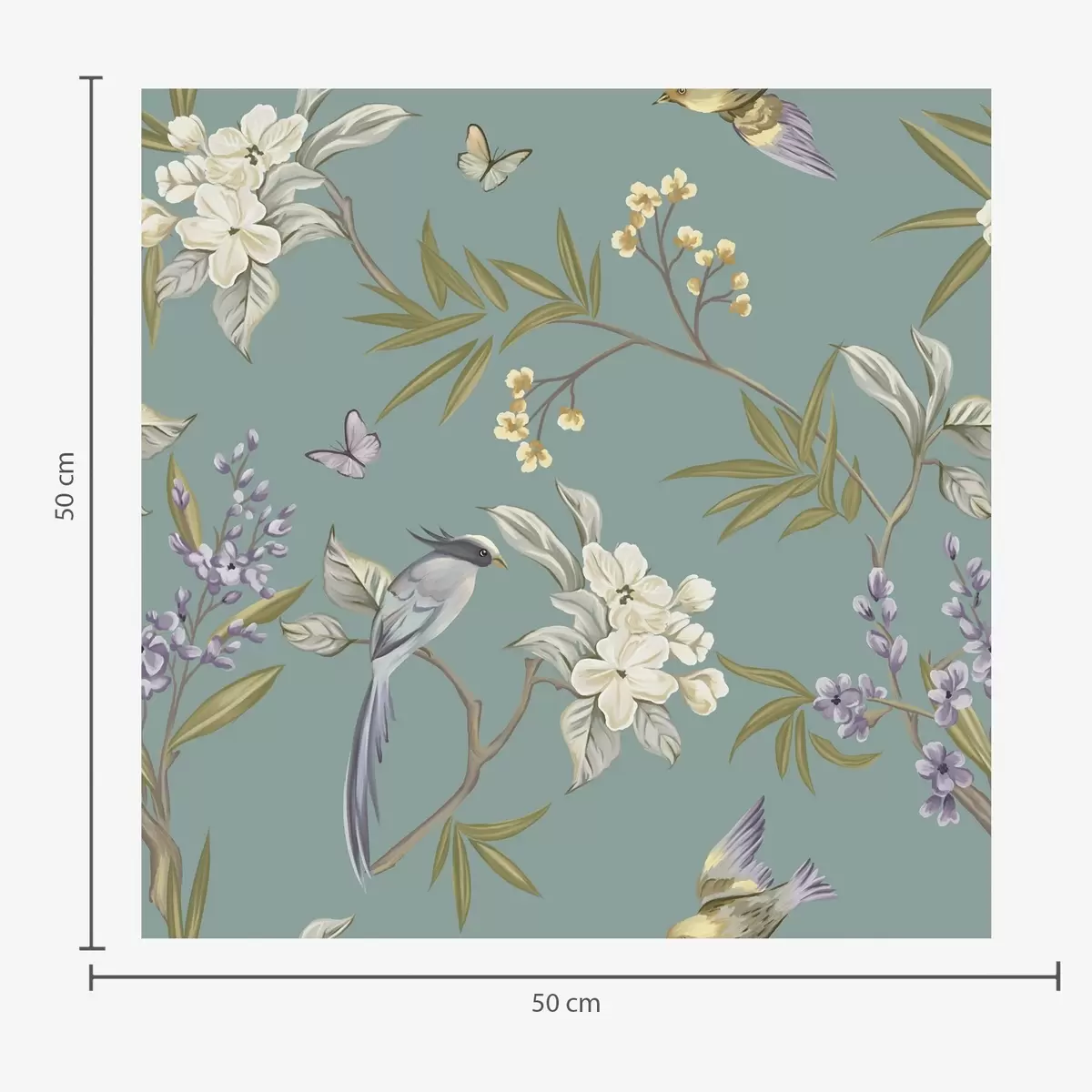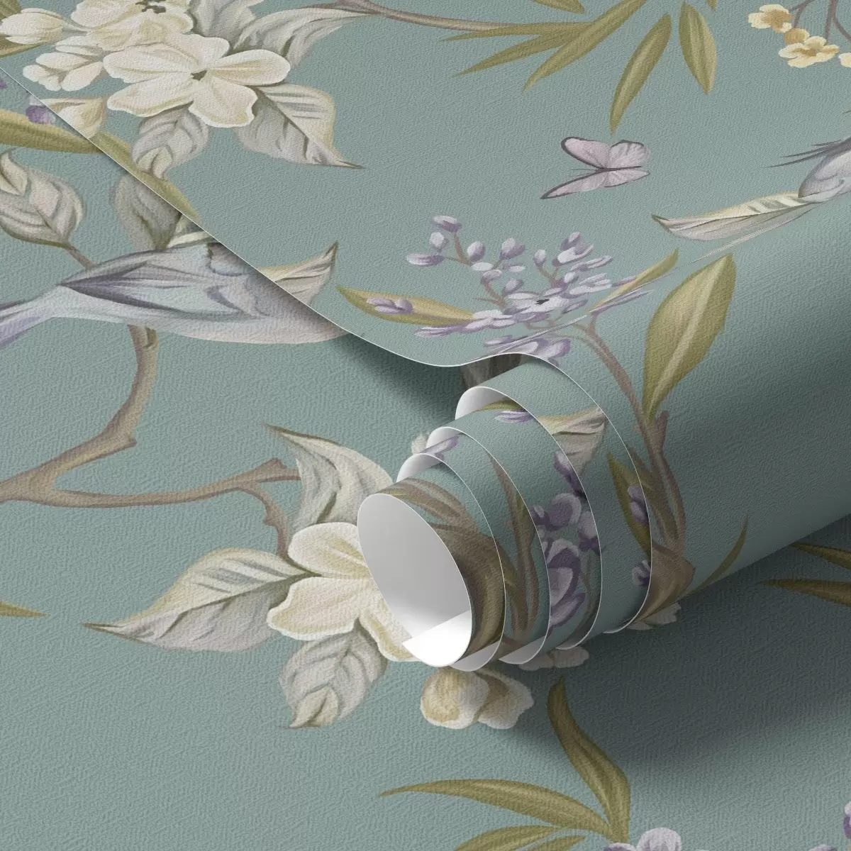 Fonds d'écran Oiseaux, fleurs et papillons sur fond bleu-gris Nr. a00735