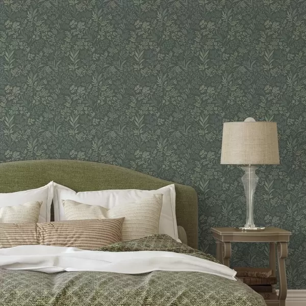 Fonds d'écran Herbes et baies émeraude, motif botanique raffiné Nr. a00740