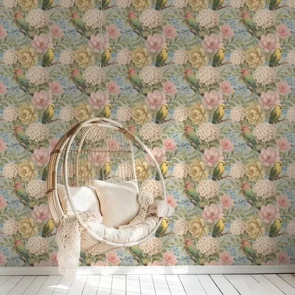 Fonds d'écran Perroquets parmi les pivoines, les hortensias et les magnolias Nr. a00747