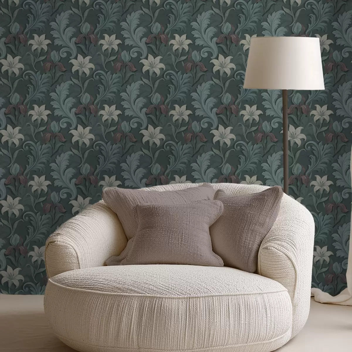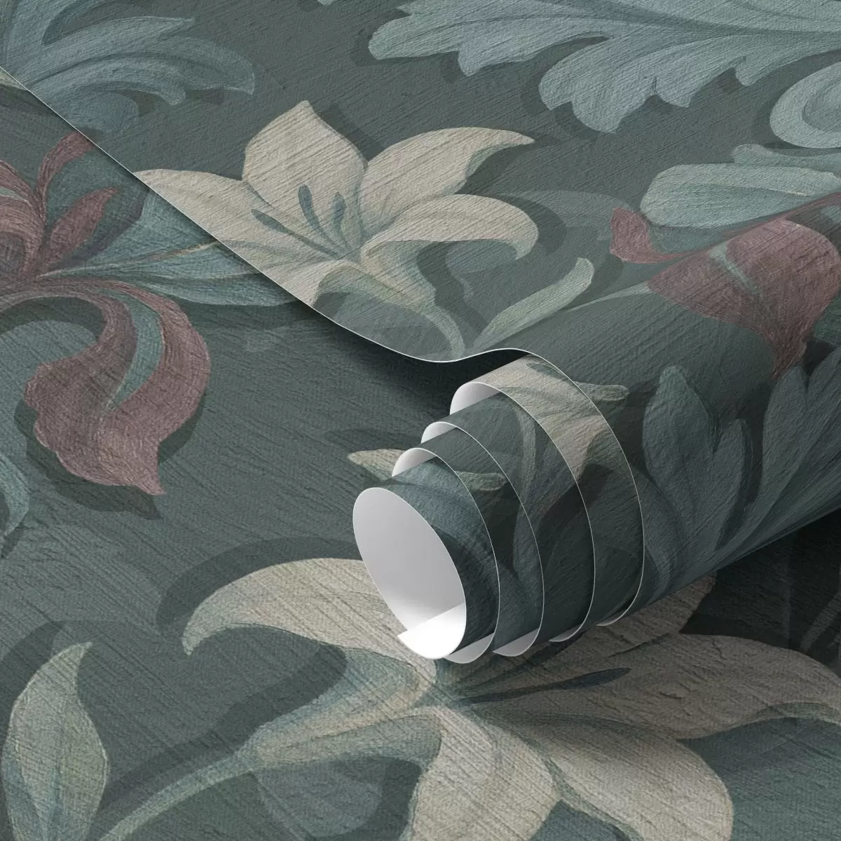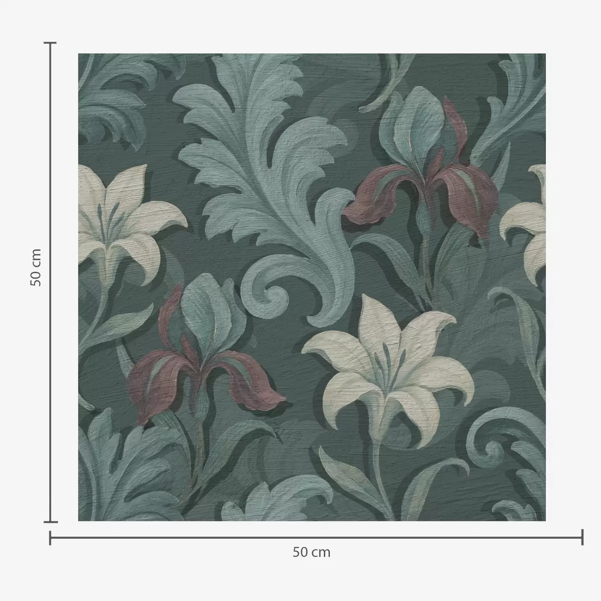 Fonds d'écran Fond vert foncé avec des iris et des feuilles décoratives Nr. a00755
