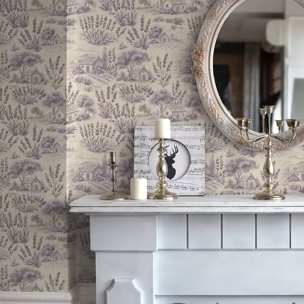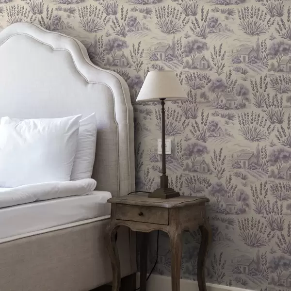 Fonds d'écran Champs de lavande et maisons aux tons pastel Nr. a00765