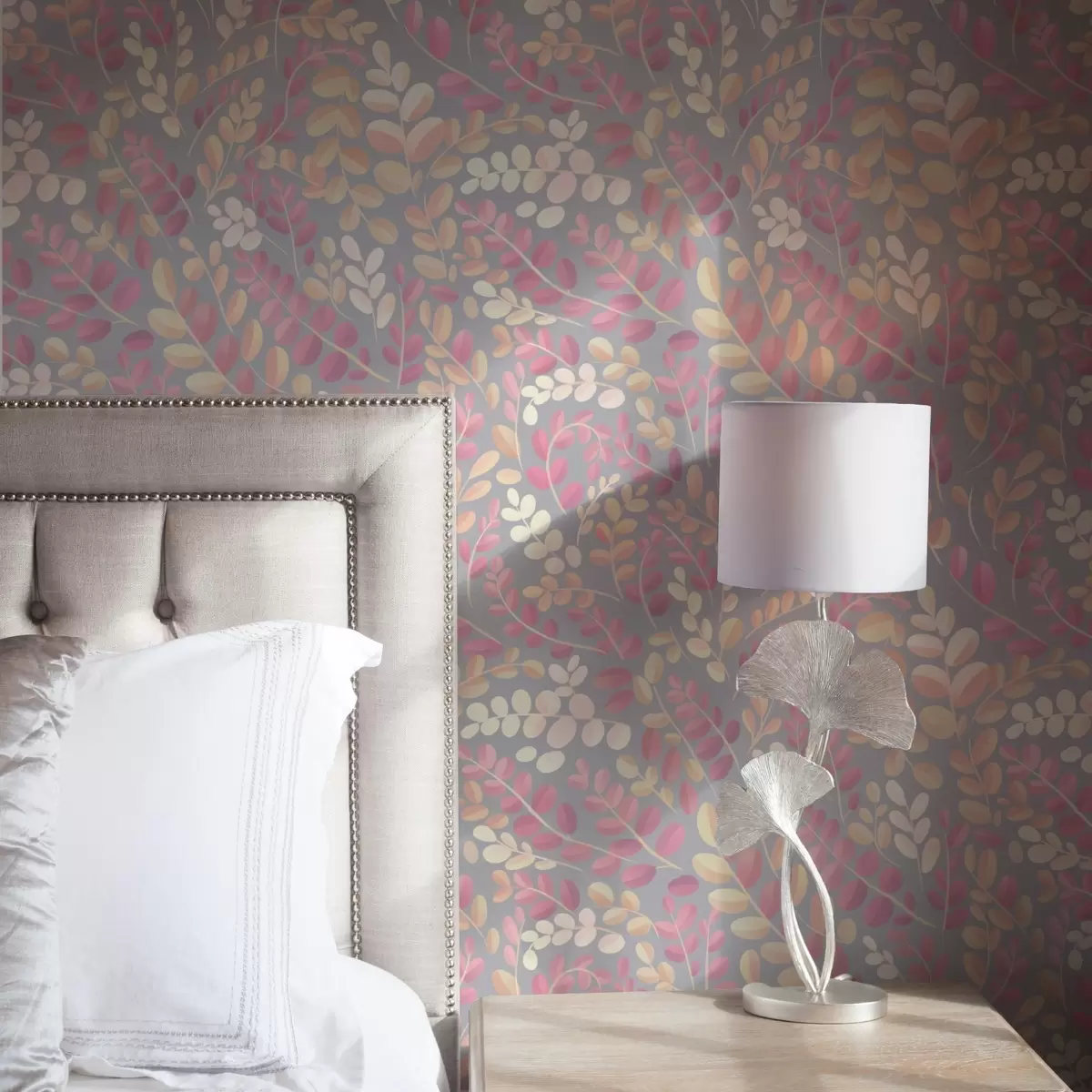 Fonds d'écran Branches pastel avec feuillage rose-pêche sur fond gris Nr. a00799v1
