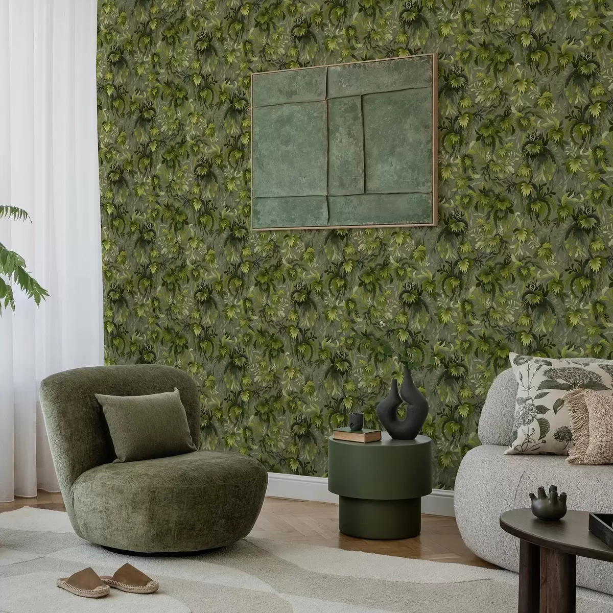 Fonds d'écran Feuillage vert dense sur fond gris-vert Nr. a00805v1