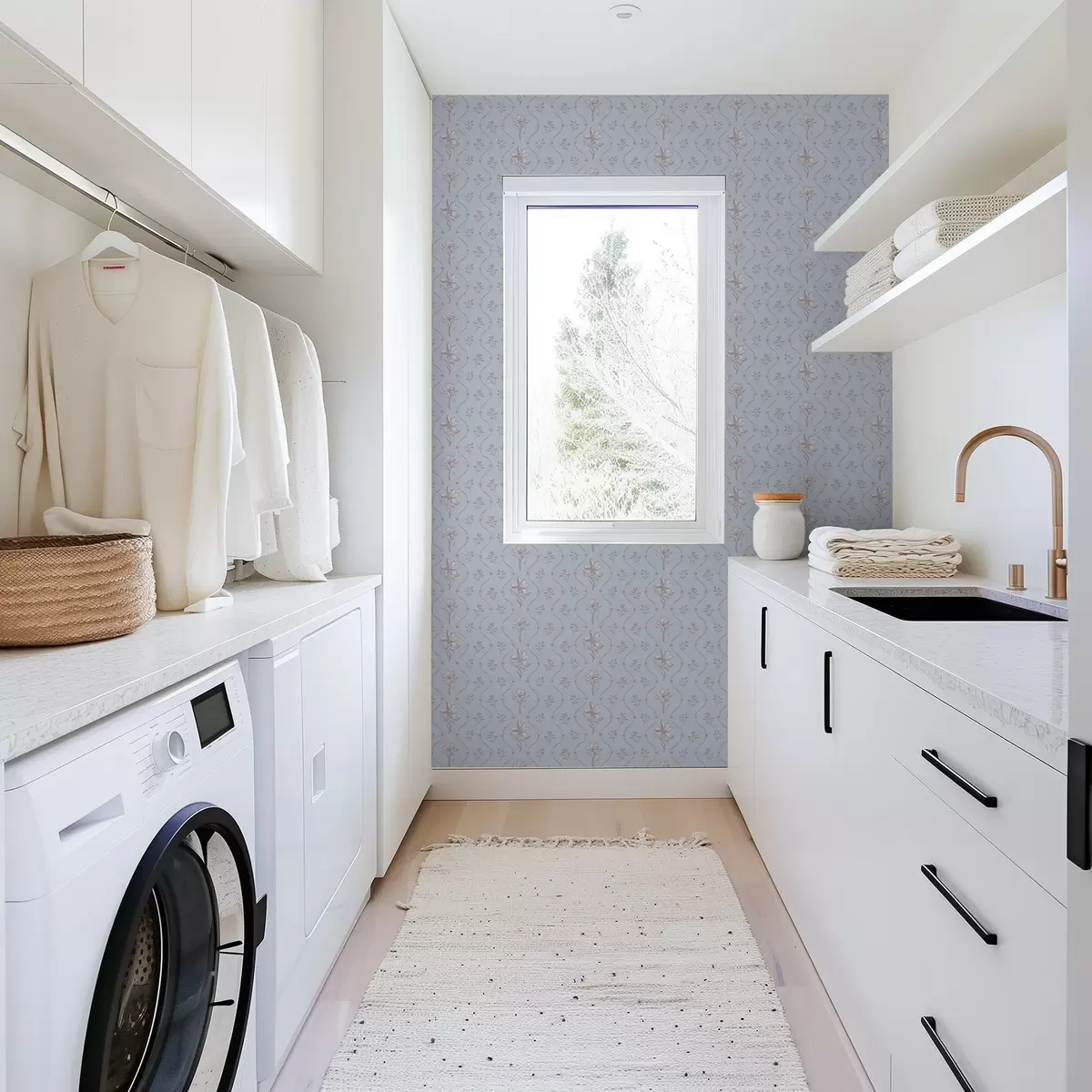 Fonds d'écran Petites fleurs et rubans dans des tons bleu pâle Nr. a00808v1