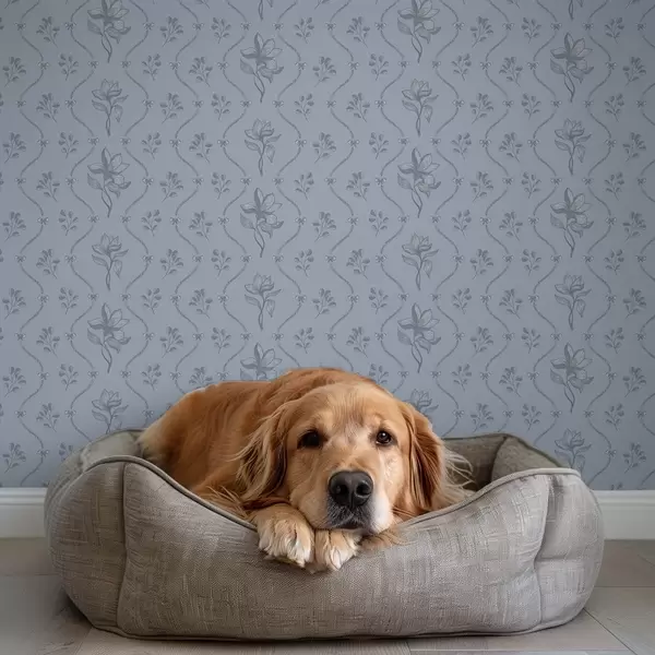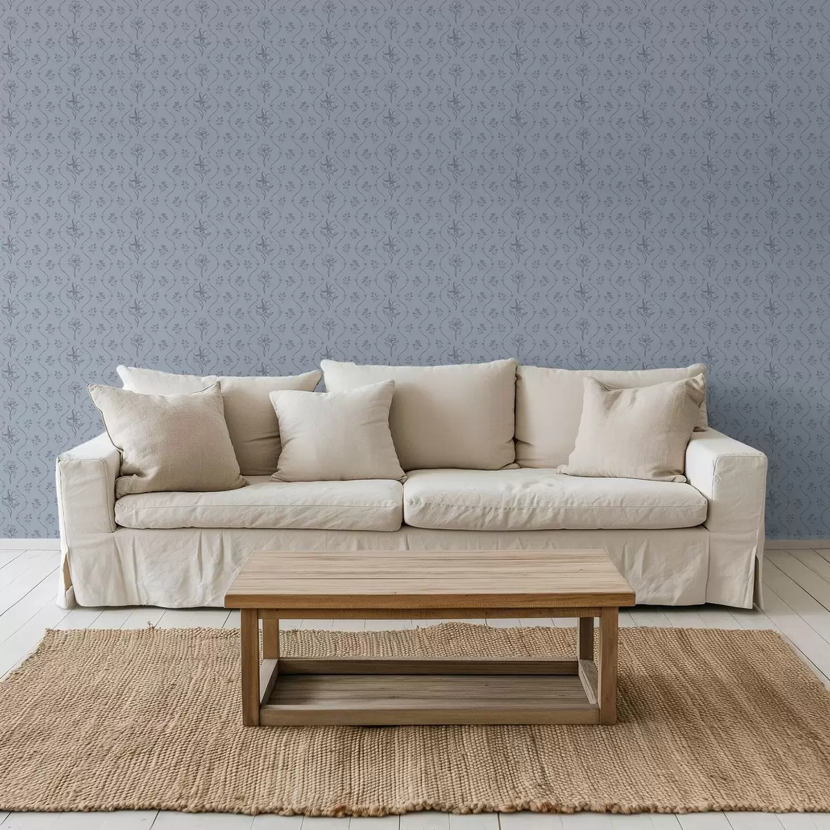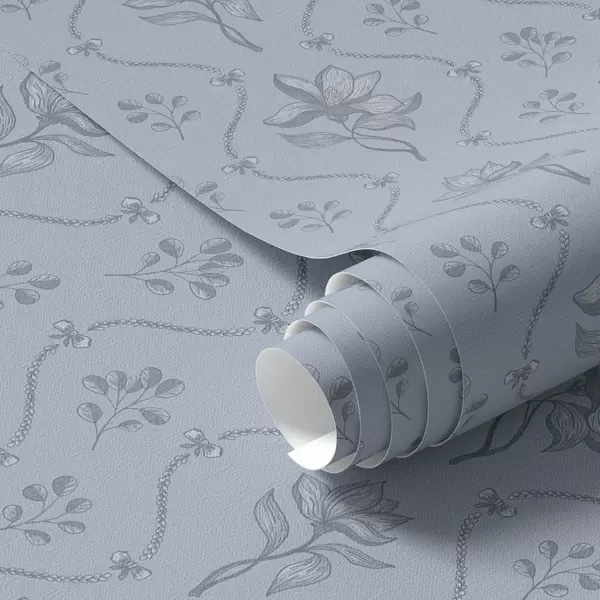 Fonds d'écran Petites fleurs et rubans dans une palette gris-bleu Nr. a00808v2