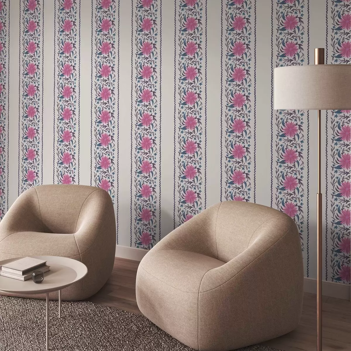 Fonds d'écran Rayures florales verticales dans les tons rose-violet Nr. a00810