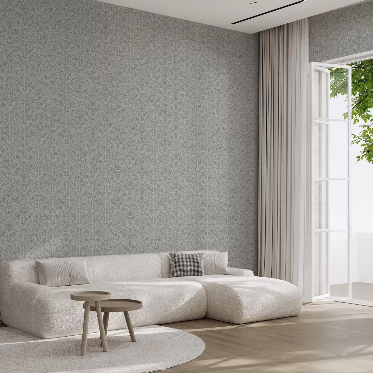 Fonds d'écran Damassé botanique gris clair aux contours doux Nr. a00815v2