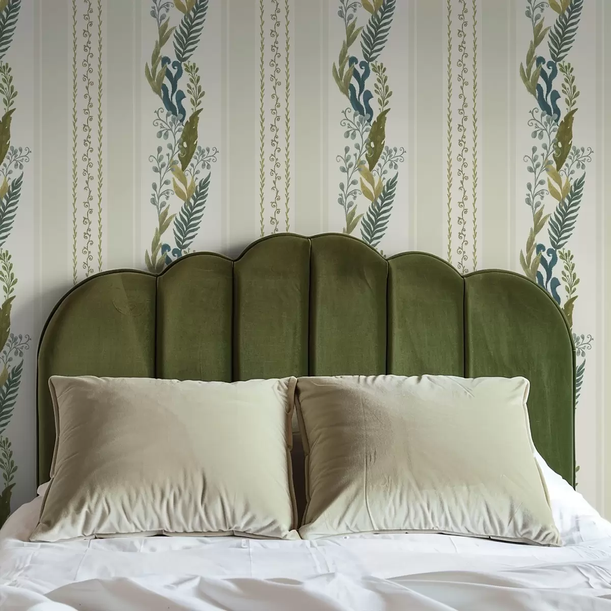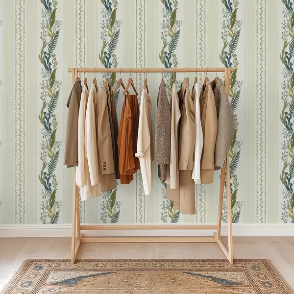 Fonds d'écran Larges rayures avec des branches picturales dans des tons bleu-olive Nr. a00825