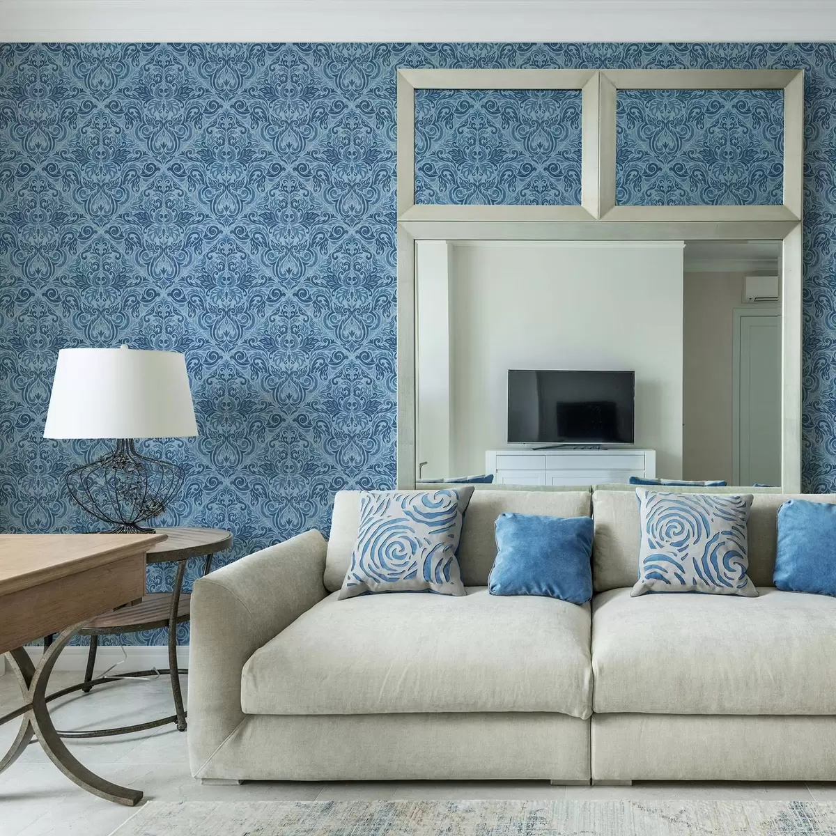 Fonds d'écran Damas dans des tons bleus froids, contraste plus marqué Nr. a00826v2