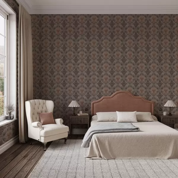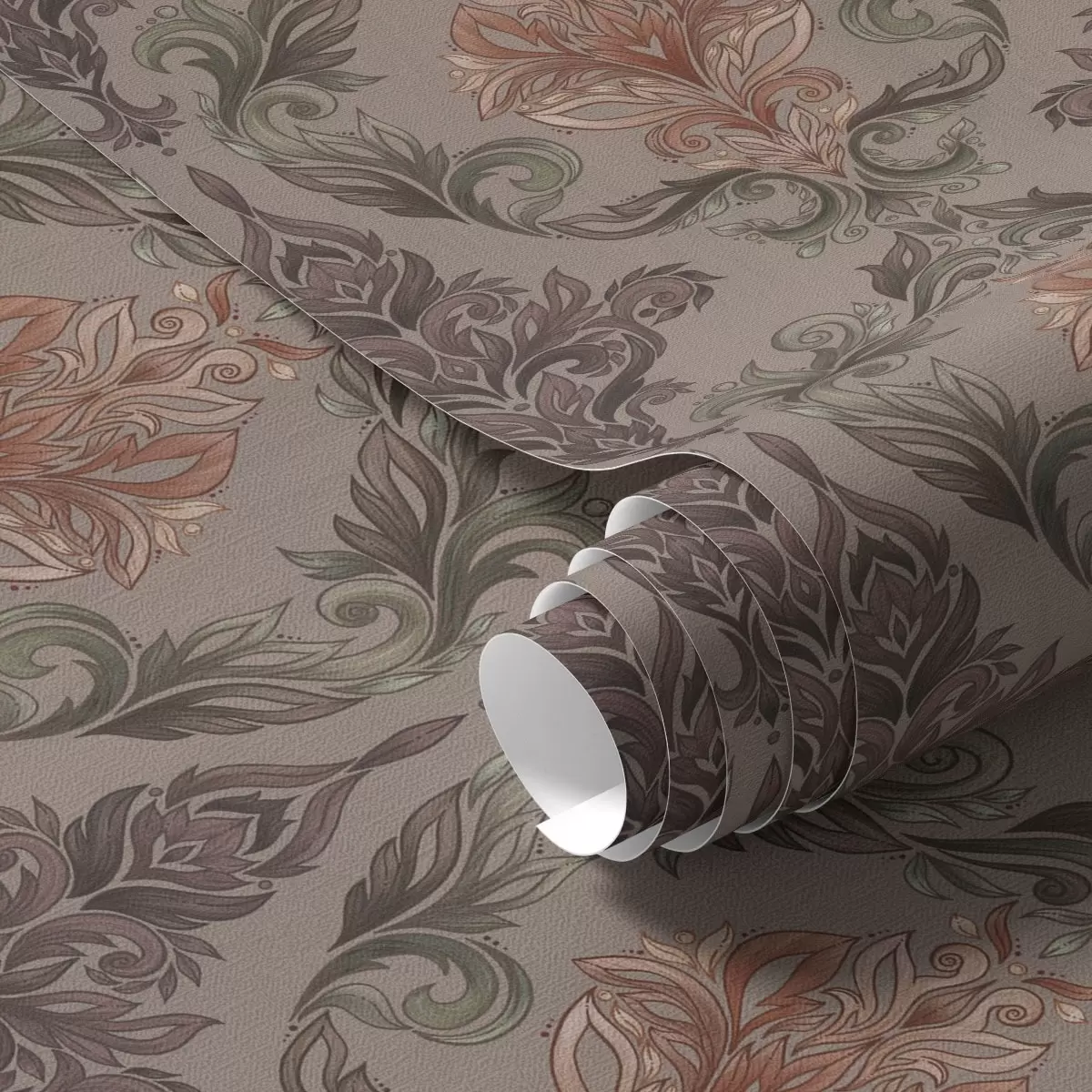 Papier peint Damassé dans une palette de couleurs brun-terre cuite, fond gris chaud a00828v2