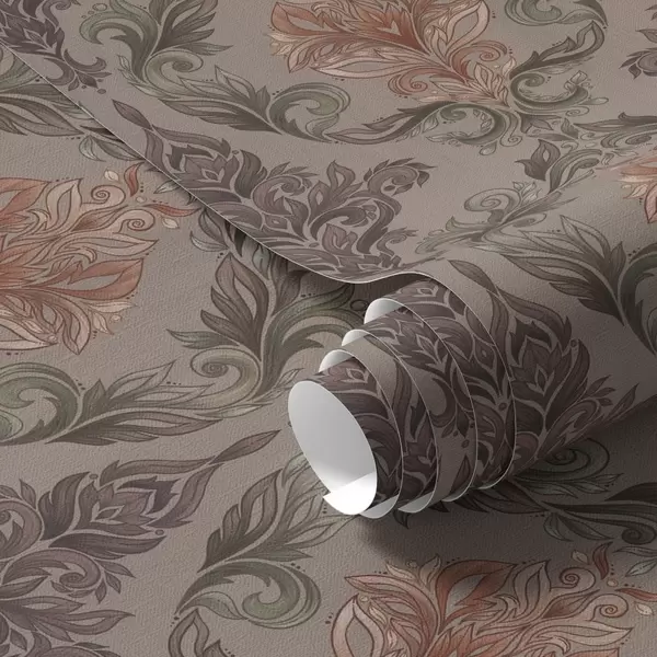 Fonds d'écran Damassé dans une palette de couleurs brun-terre cuite, fond gris chaud Nr. a00828v2