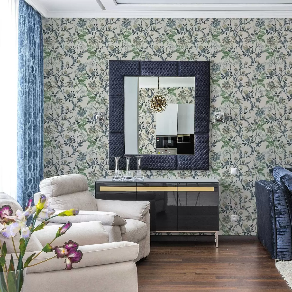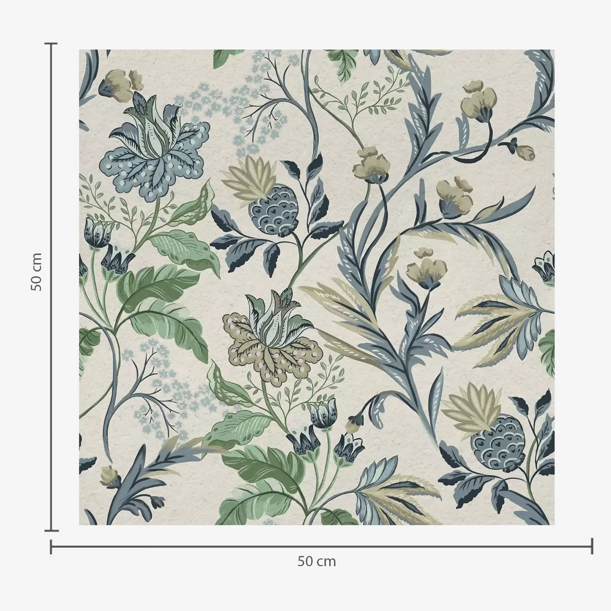 Fonds d'écran Motifs floraux et feuilles bleu-vert sur fond crème Nr. a00863