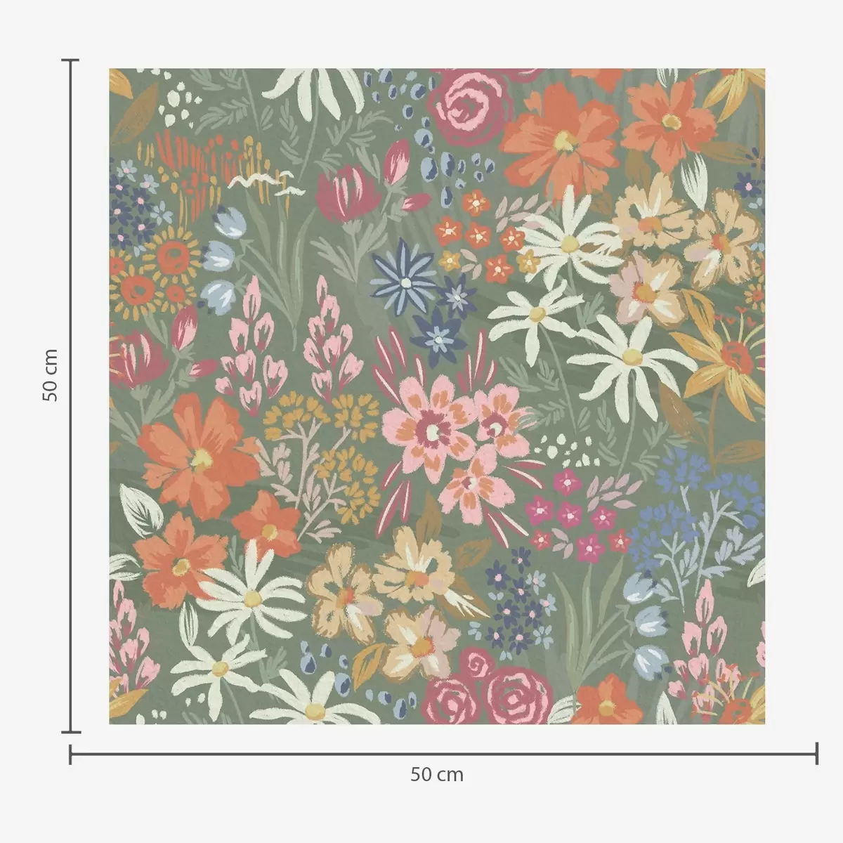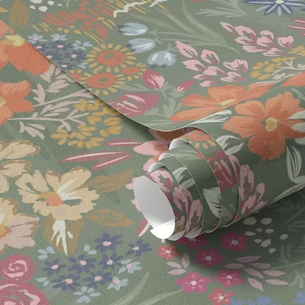 Fonds d'écran Fleurs champêtres picturales sur fond vert sauge Nr. a00864