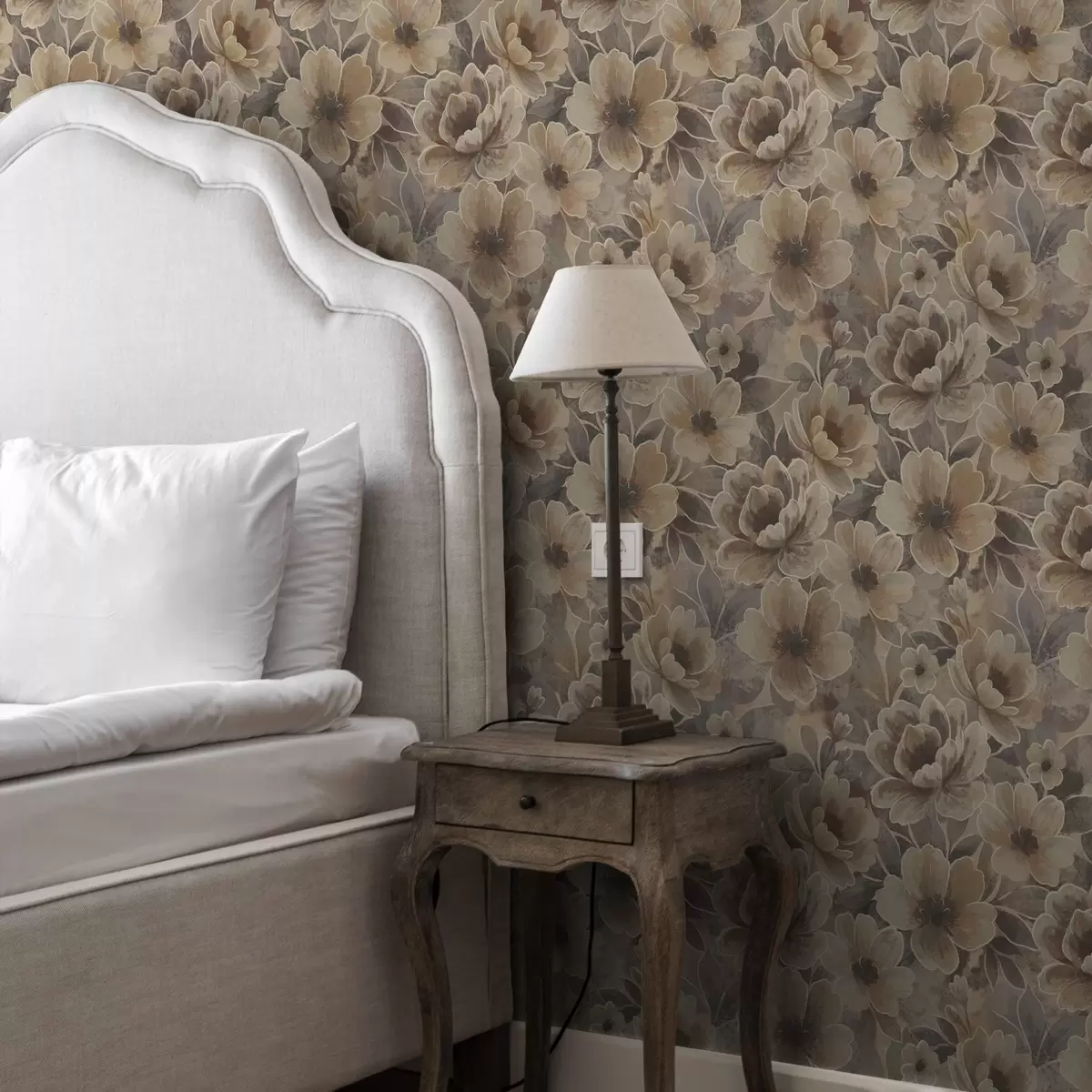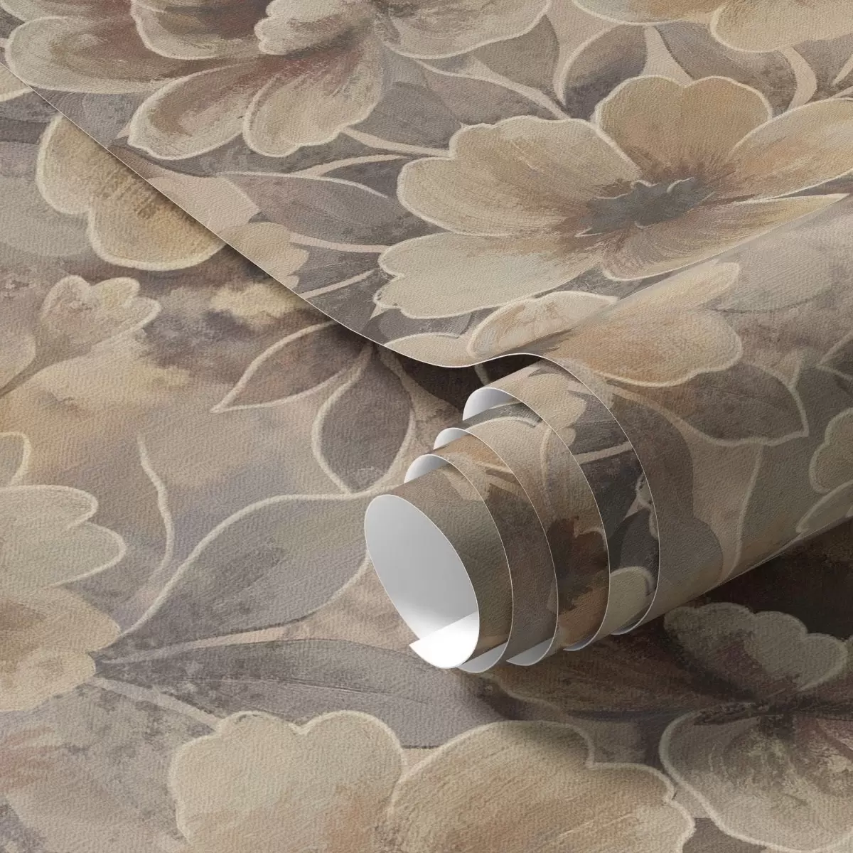 Papier peint Fleurs beiges picturales sur fond abstrait fumé a00884