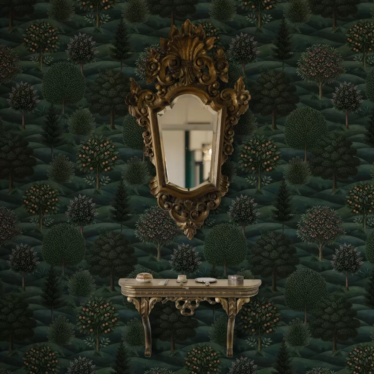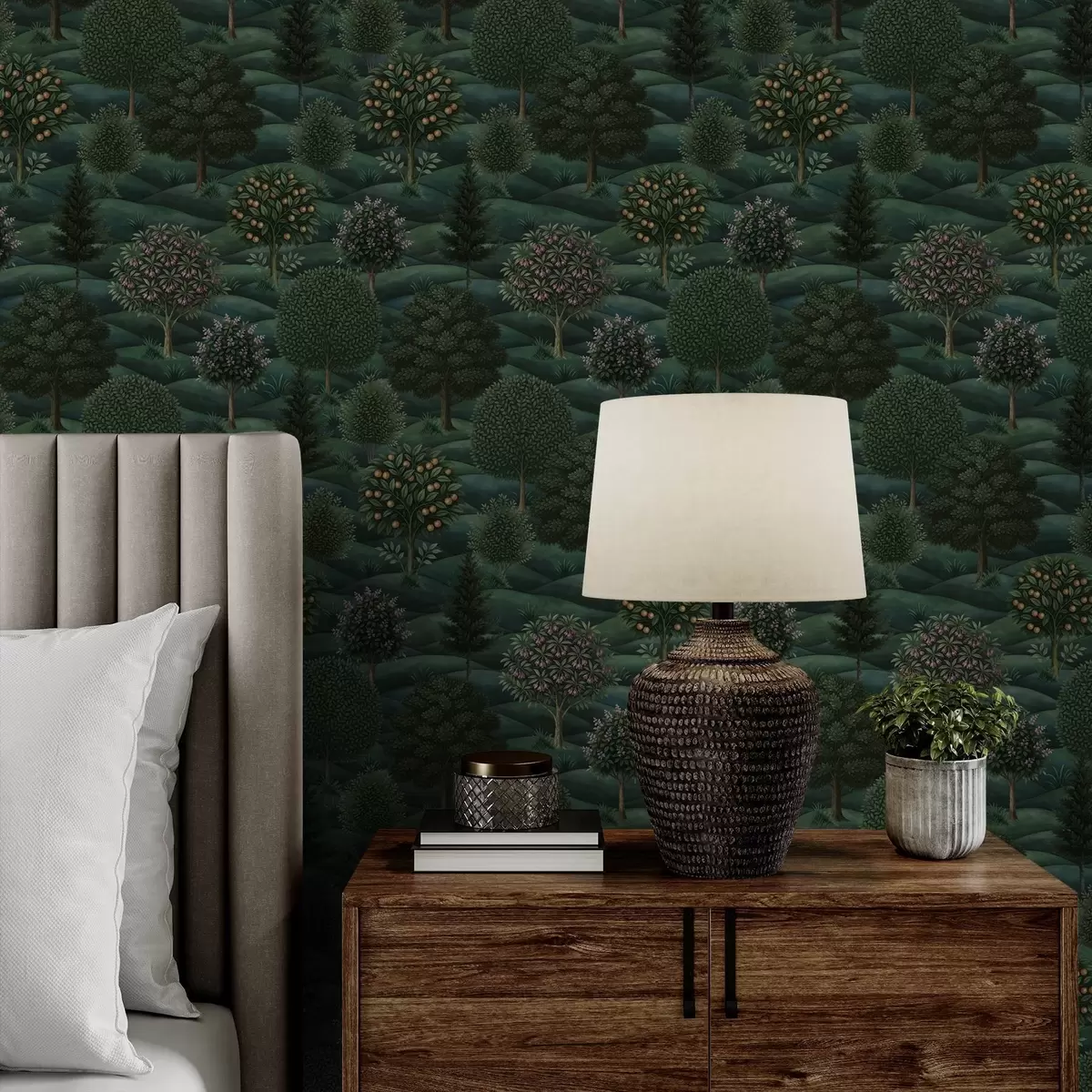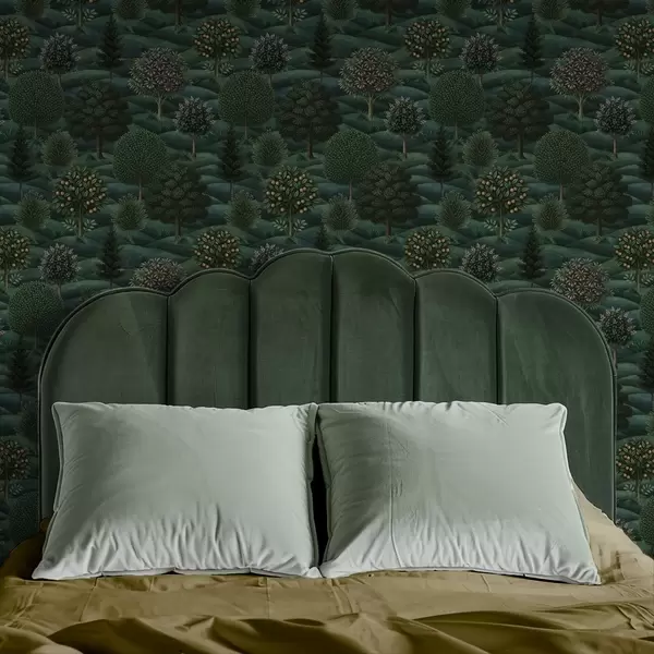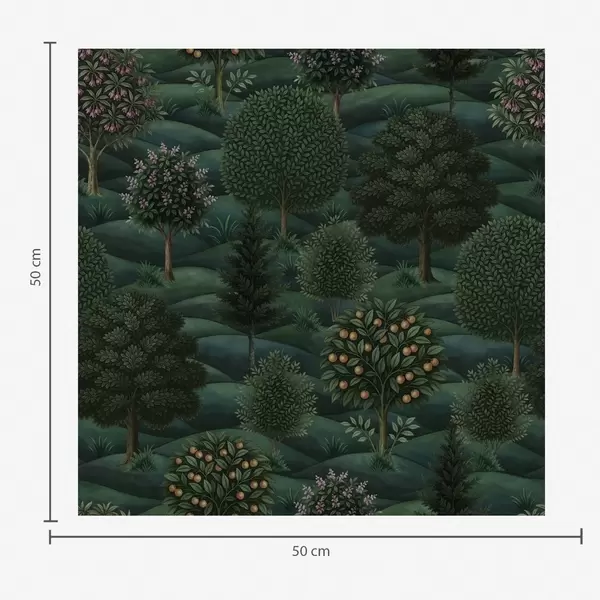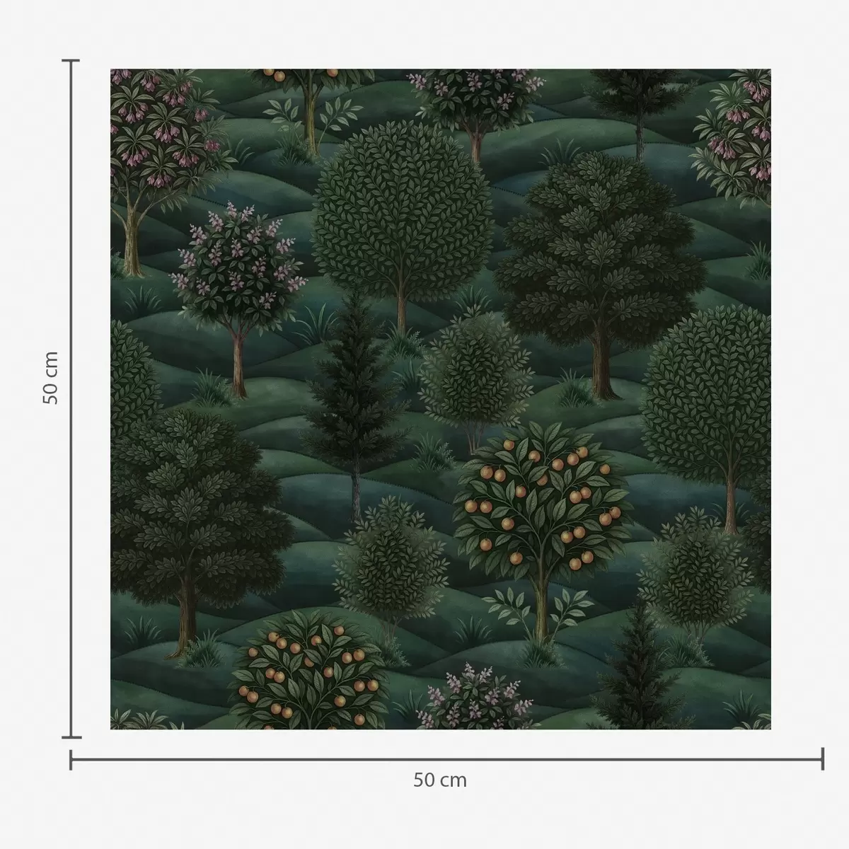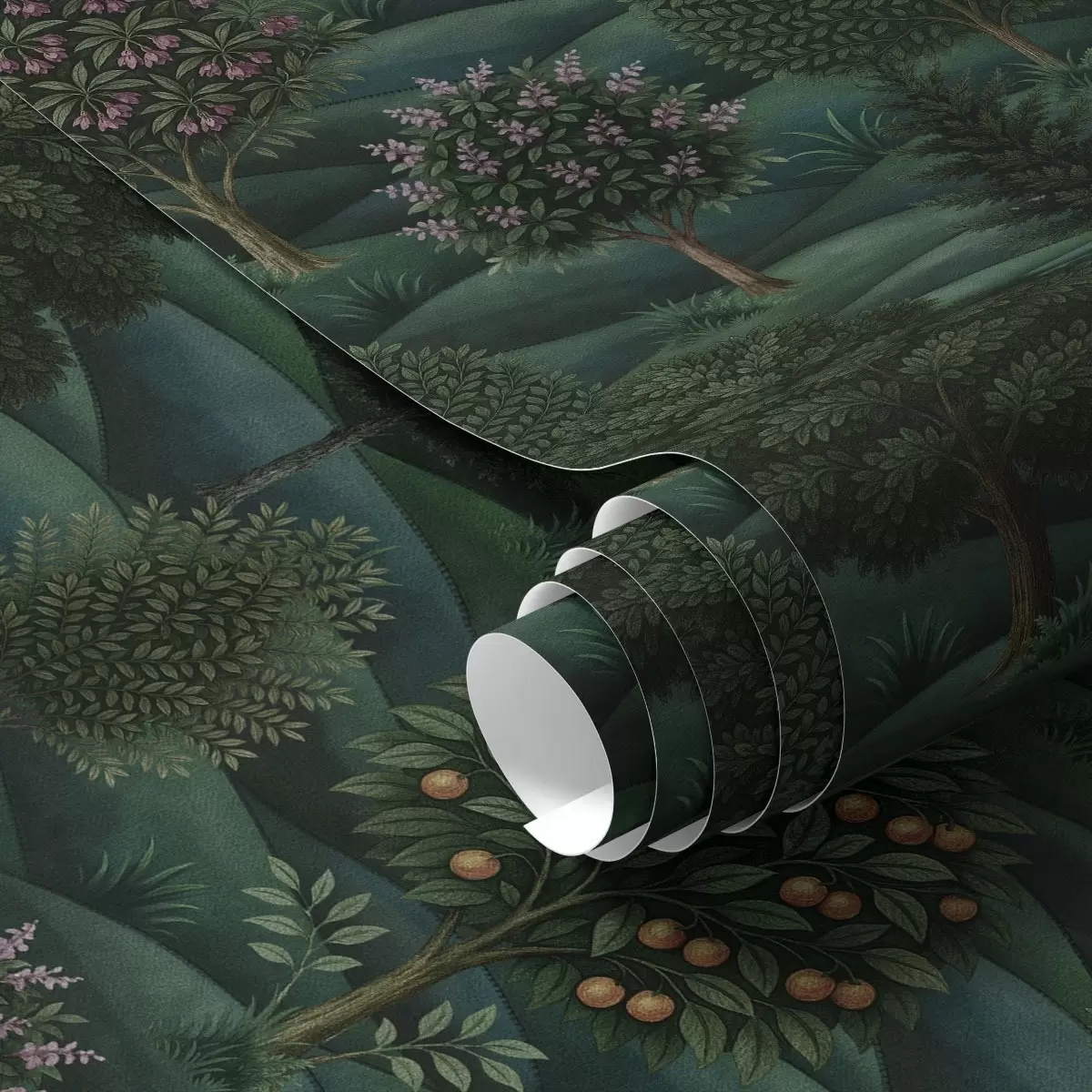 Fonds d'écran Paysage verdoyant et vallonné parsemé d'arbres disposés en motifs Nr. a00892