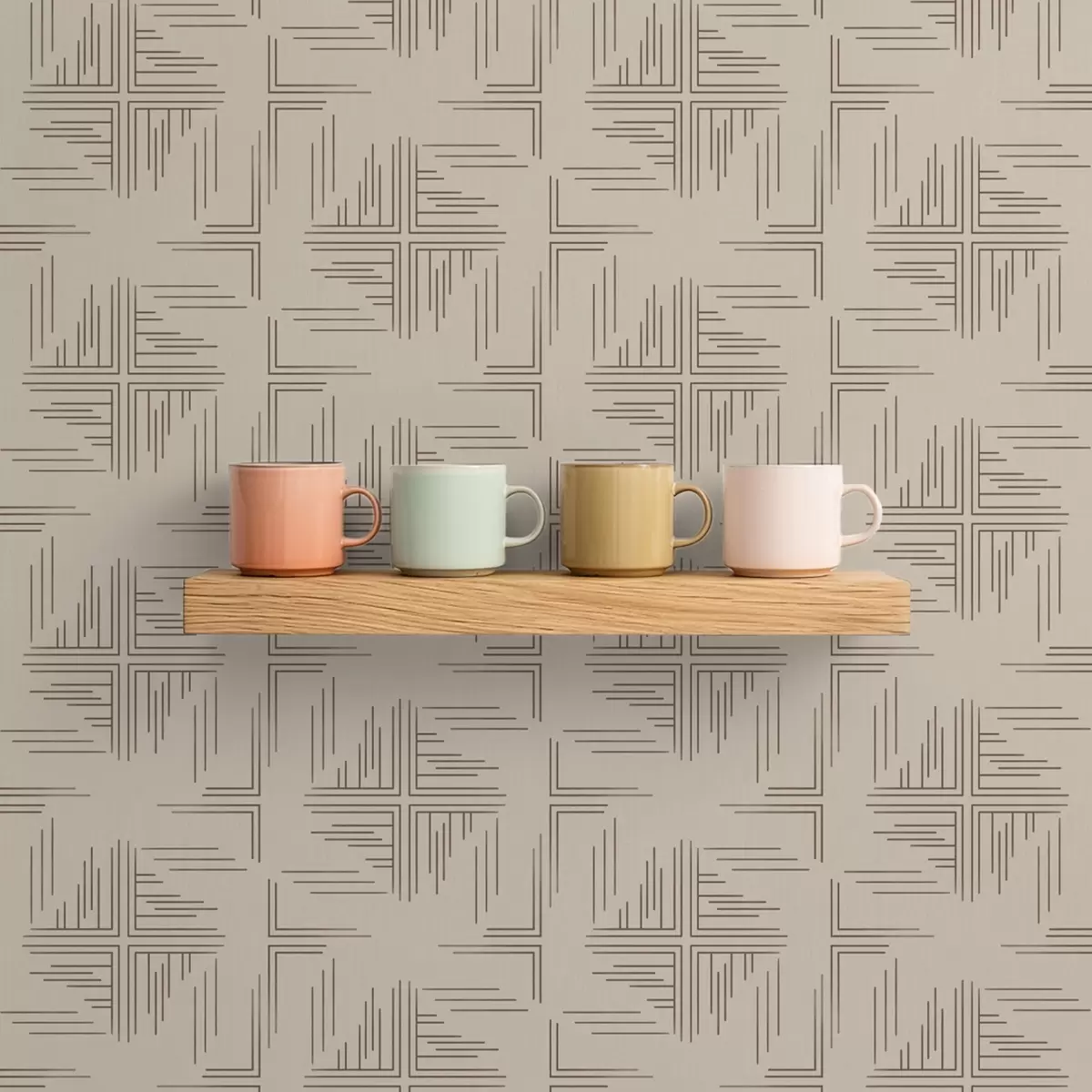 Fonds d'écran Blocs d'angle en cacao décalés avec accents de lignes dispersées, beige Nr. a00912