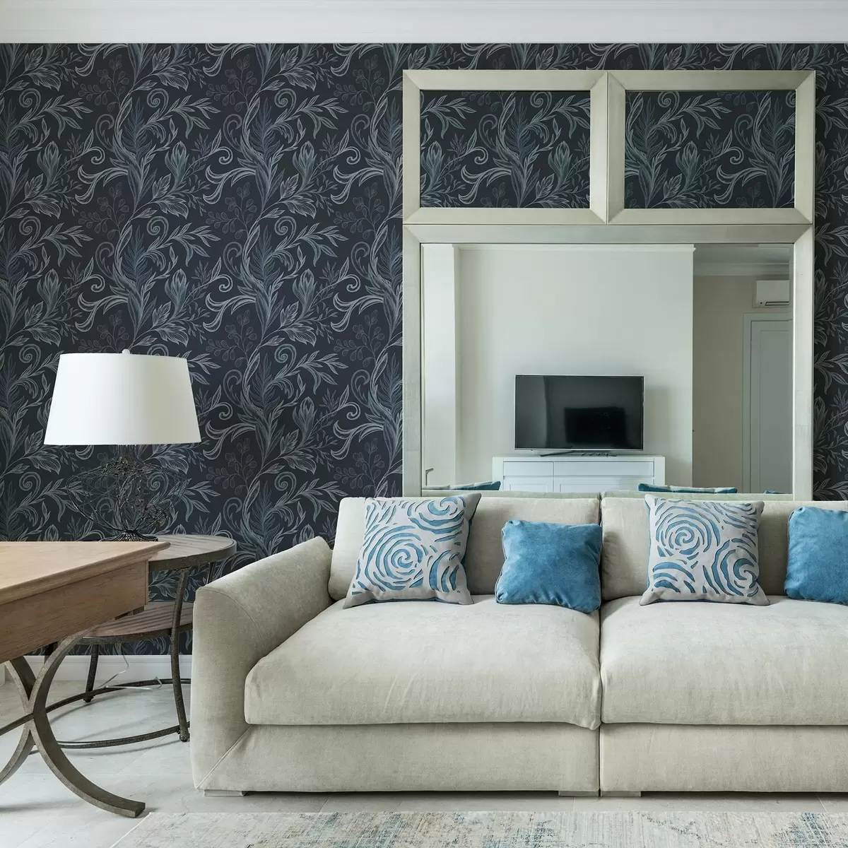 Papier peint Feuilles recourbées bleu indigo foncé avec ombrage dessiné à la main a00935