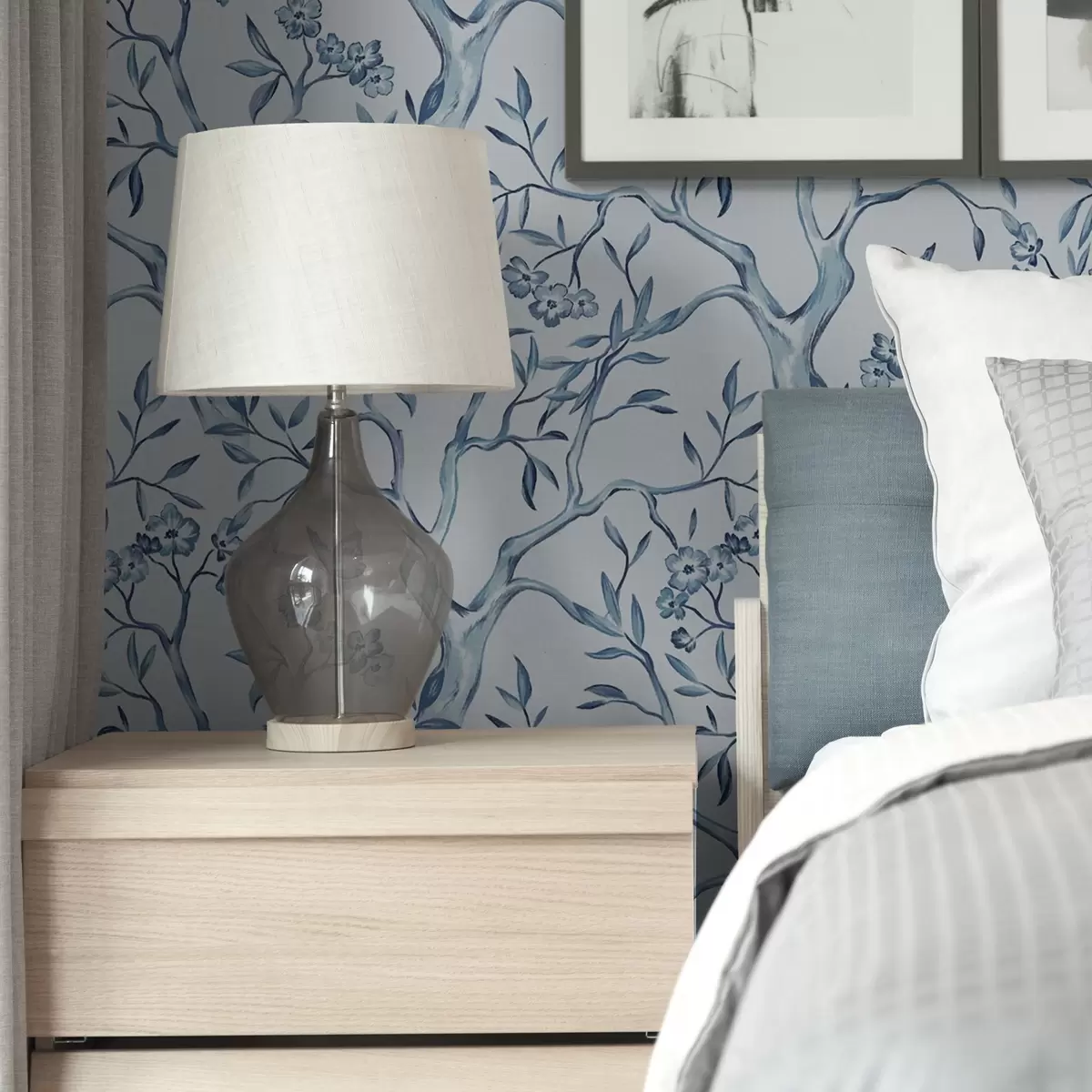 Fonds d'écran Branches bleues aquarellées avec fleurs et papillons sur fond clair Nr. a00951