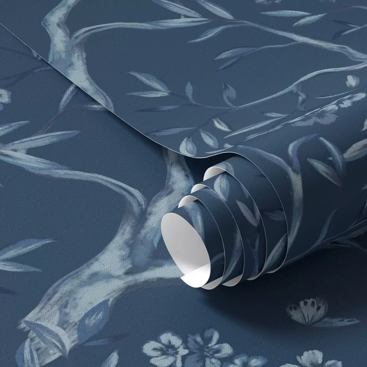 Fonds d'écran Branches fleuries bleues avec des papillons sur fond sombre Nr. a00951v1