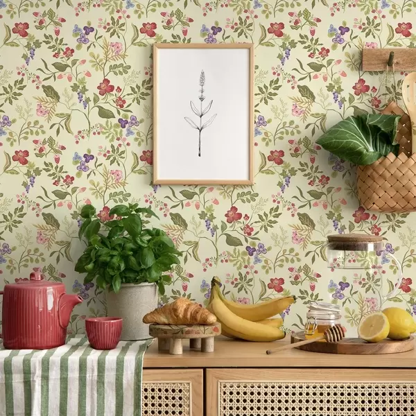 Fonds d'écran Jardin fleuri avec baies, raisins et fleurs sauvages Nr. a00961