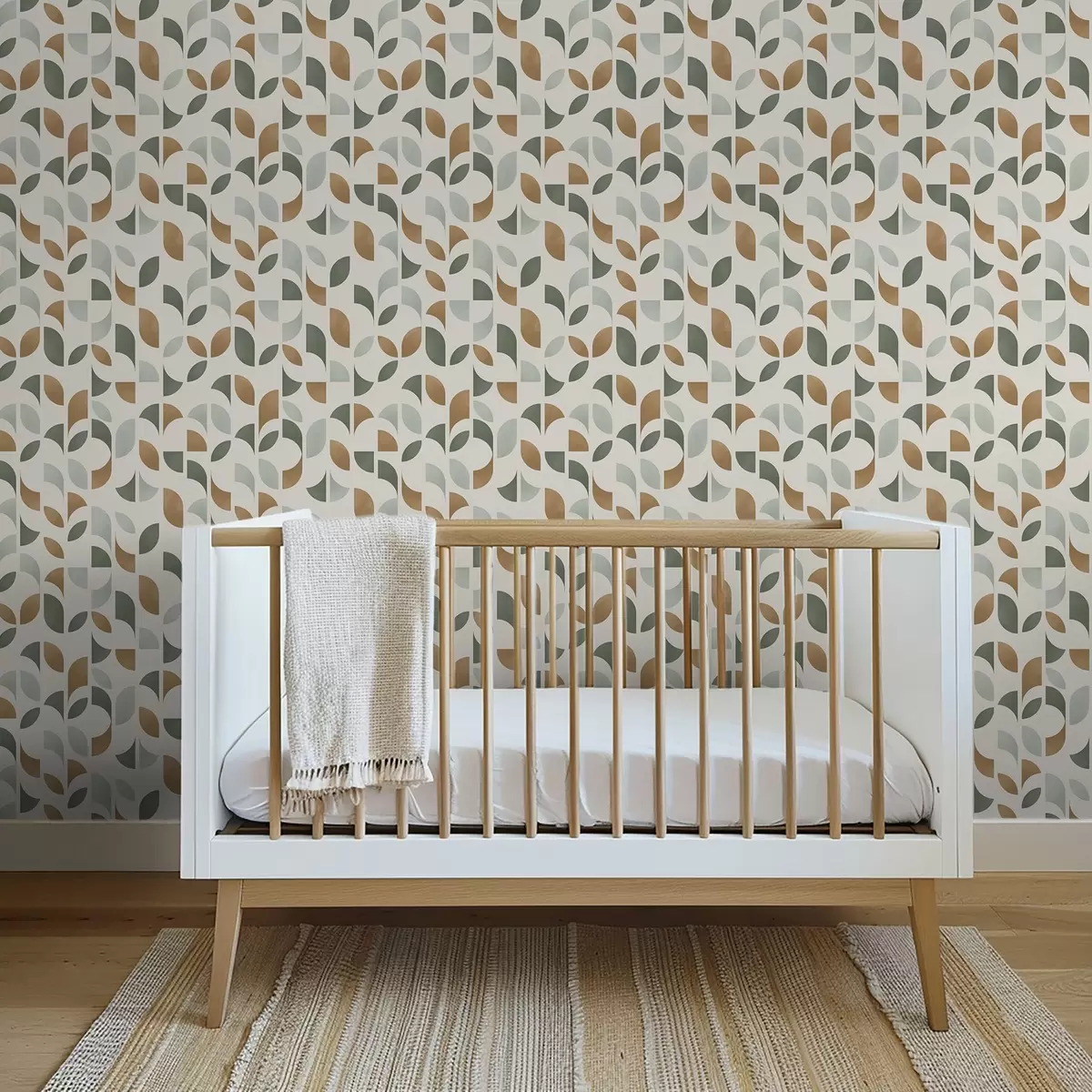 Fonds d'écran Colonnes verticales composées de demi-cercles et de feuilles, vert-terre cuite Nr. a00986