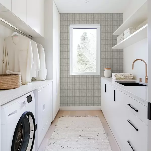 Papier peint Imitation de carreaux carrés dans une palette douce gris-vert a00988