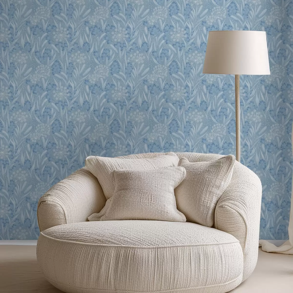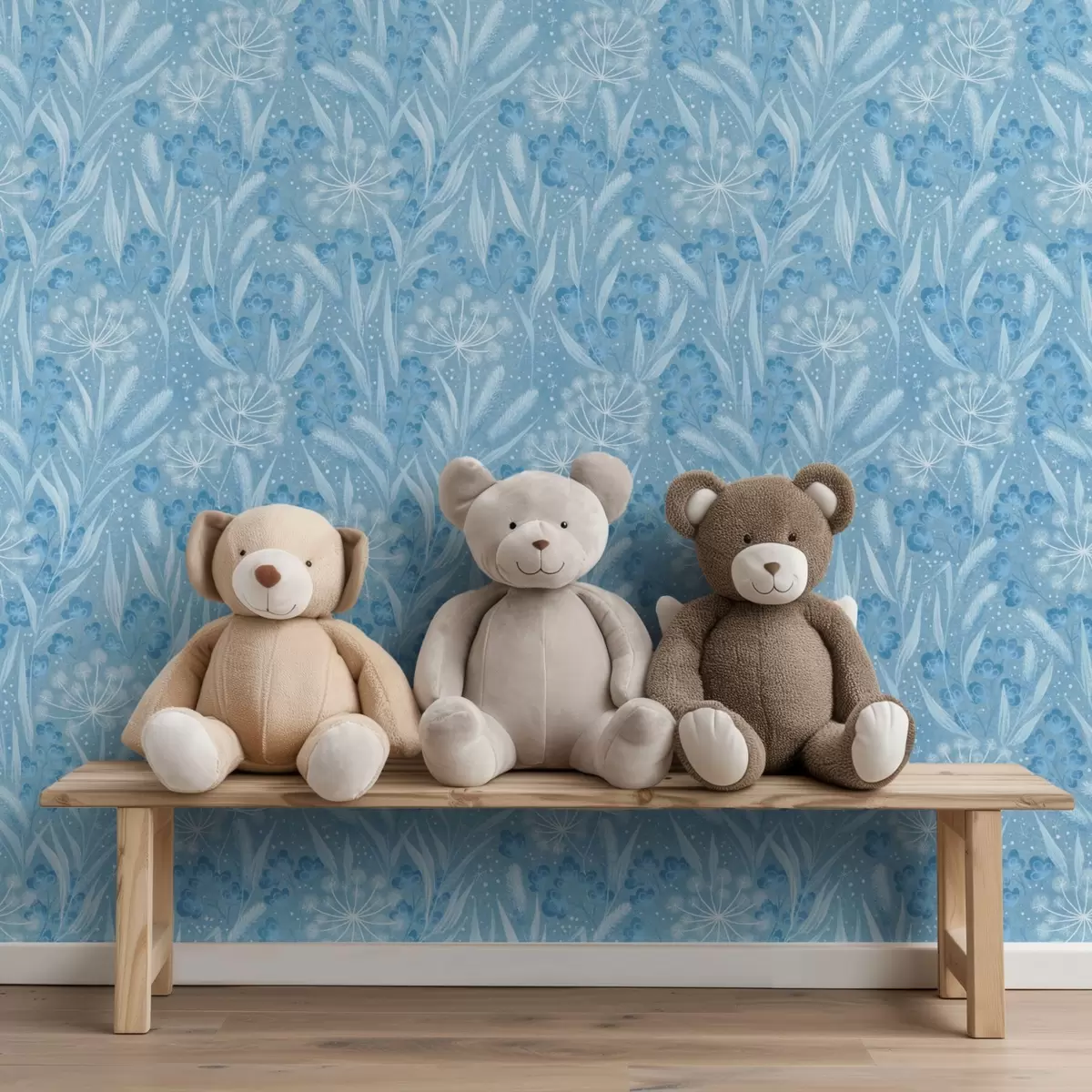 Papier peint Prairie bleue givrée avec des graines de pissenlit et de minuscules fleurs a00995