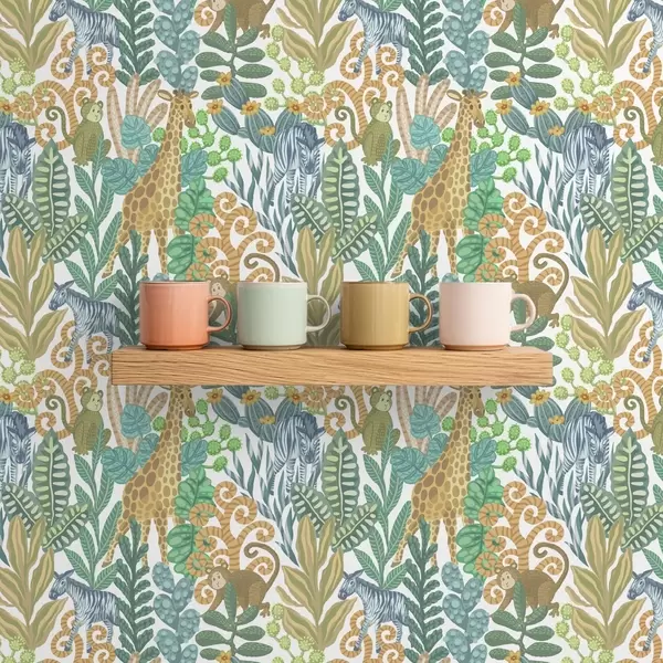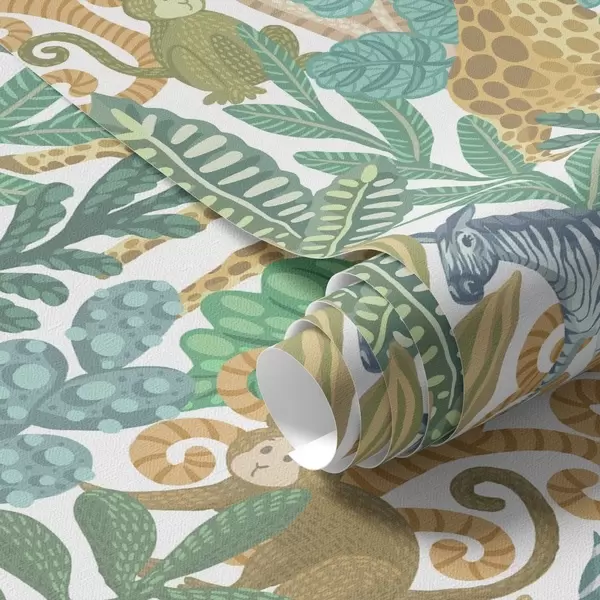 Fonds d'écran Animaux joyeux de la savane parmi les feuilles sur fond blanc Nr. a01000