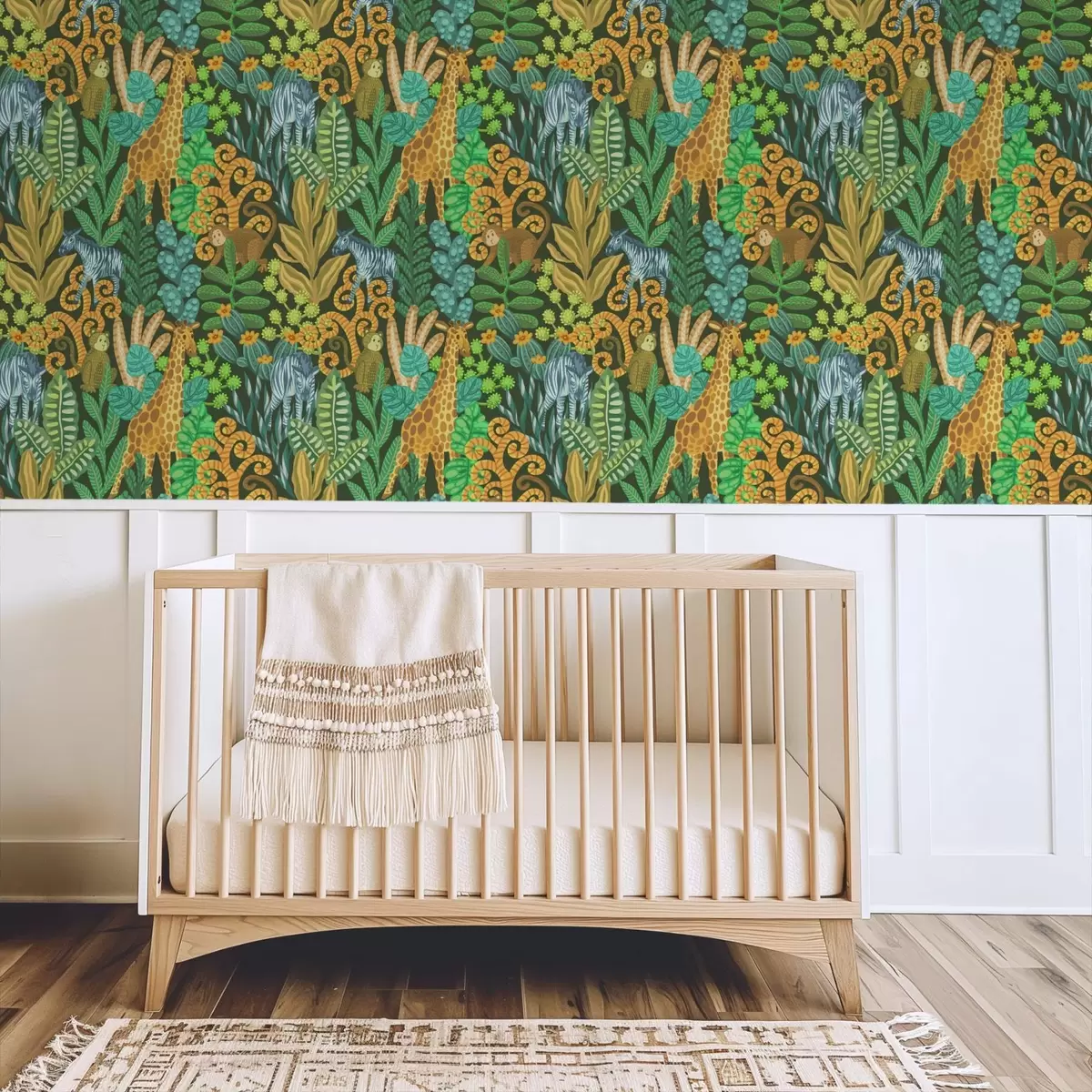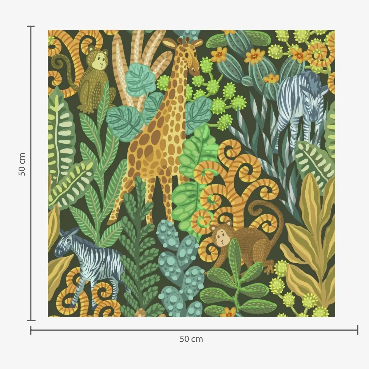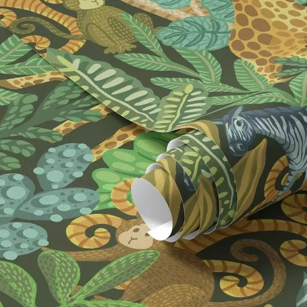 Fonds d'écran Jungle dense avec des animaux sur fond vert foncé Nr. a01000v2