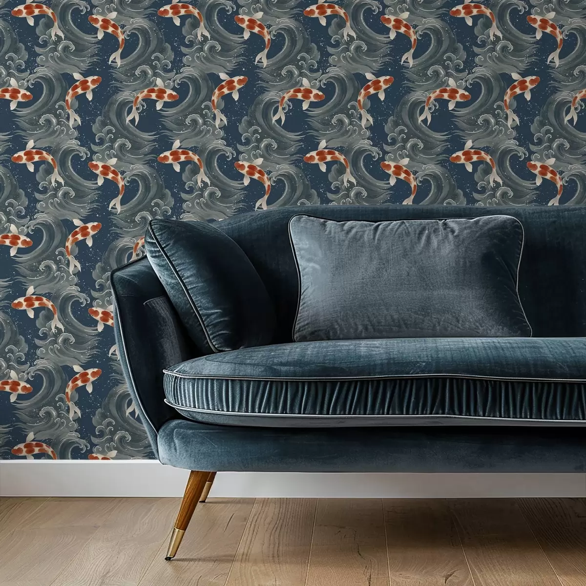 Papier peint Des carpes koï nageant parmi les vagues spectaculaires de l'océan a01019