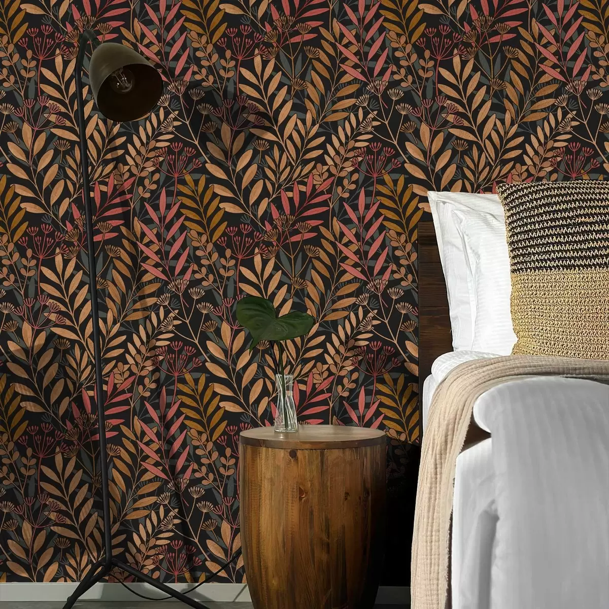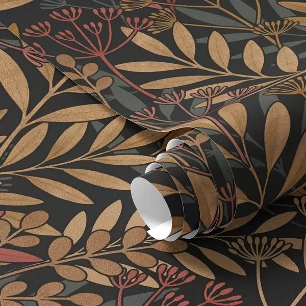 Fonds d'écran Prairie sombre avec feuilles stylisées et gousses Nr. a01020