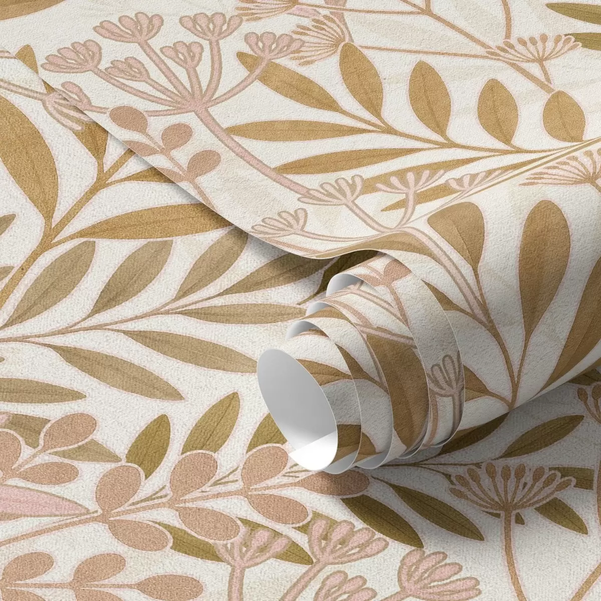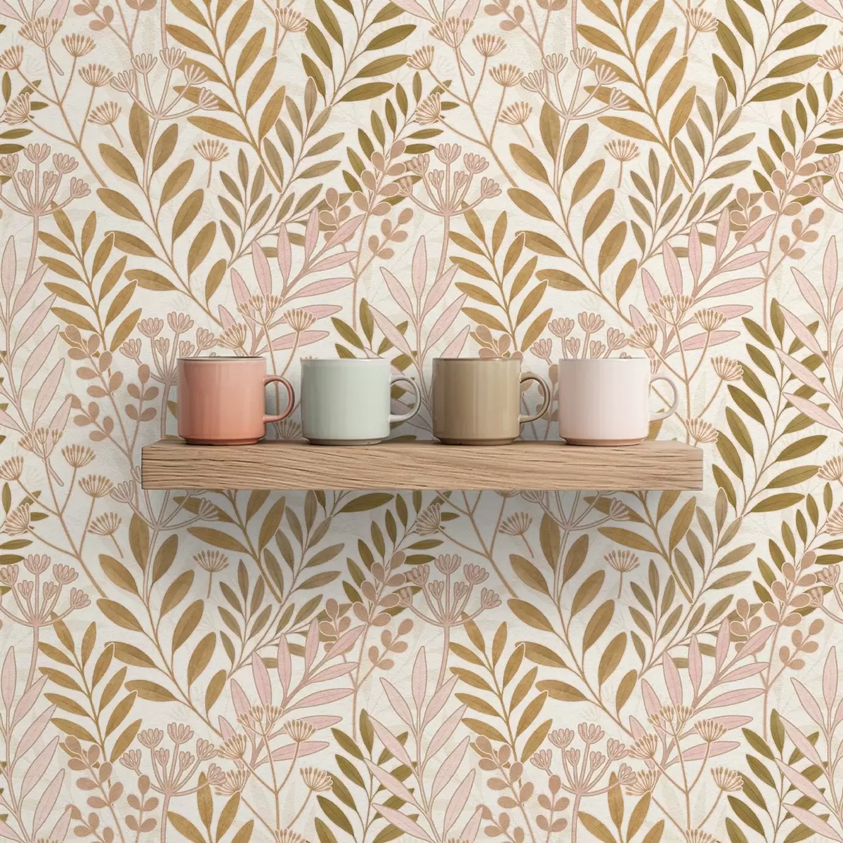 Fonds d'écran Motif botanique léger avec des feuilles délicates roses et couleur avoine Nr. a01020v1