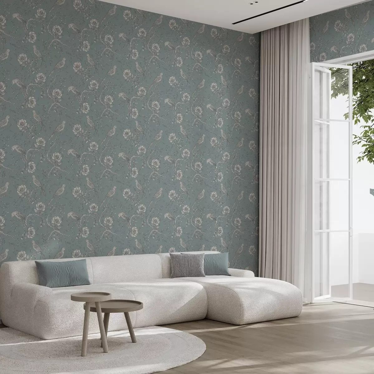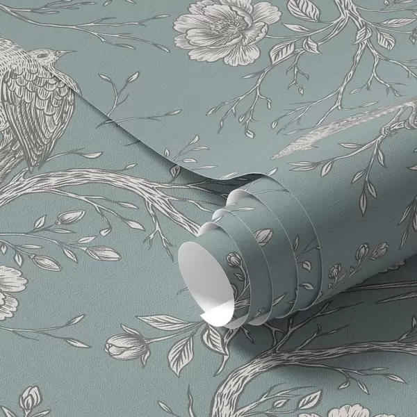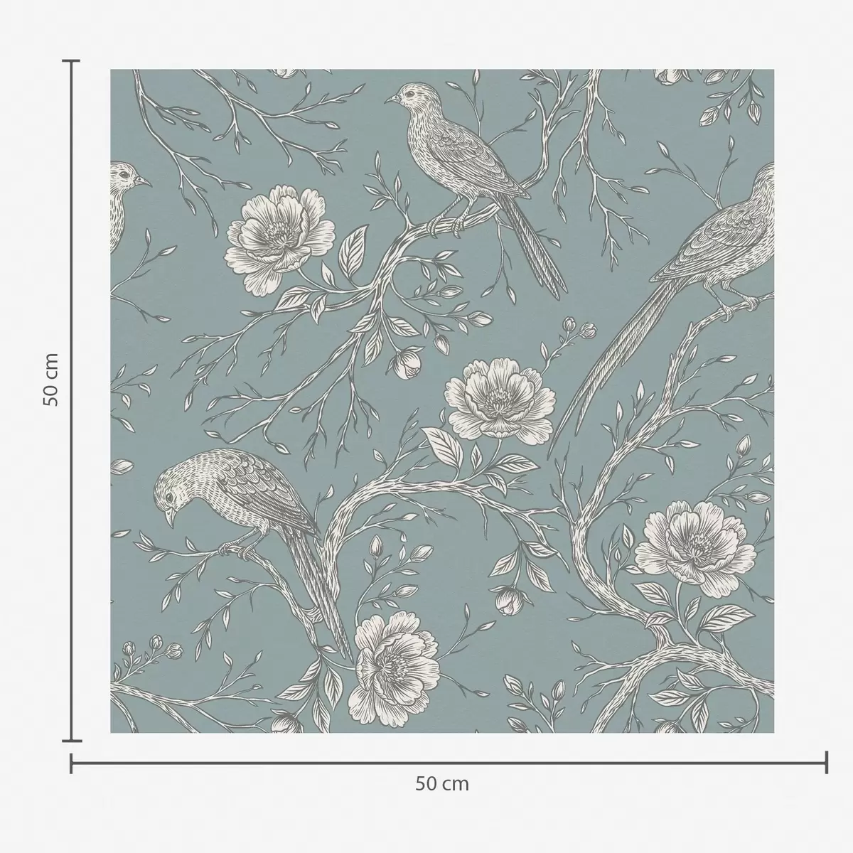 Fonds d'écran Oiseaux dessinés en contour sur des branches, fond bleu discret Nr. a01022