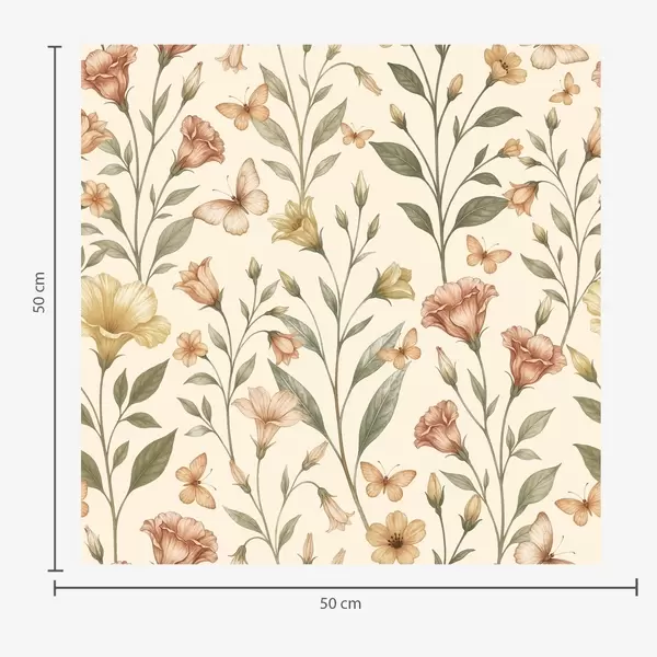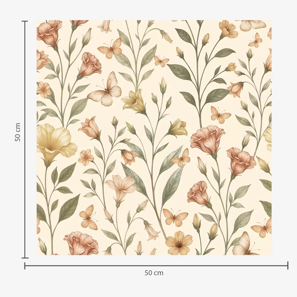 Papier peint Délicates fleurs de pêcher et papillons sur fond crème chaud a01026