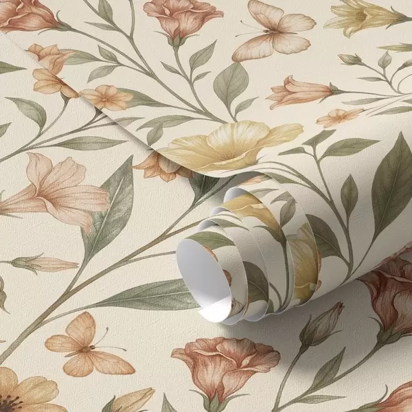 Fonds d'écran Délicates fleurs de pêcher et papillons sur fond crème chaud Nr. a01026