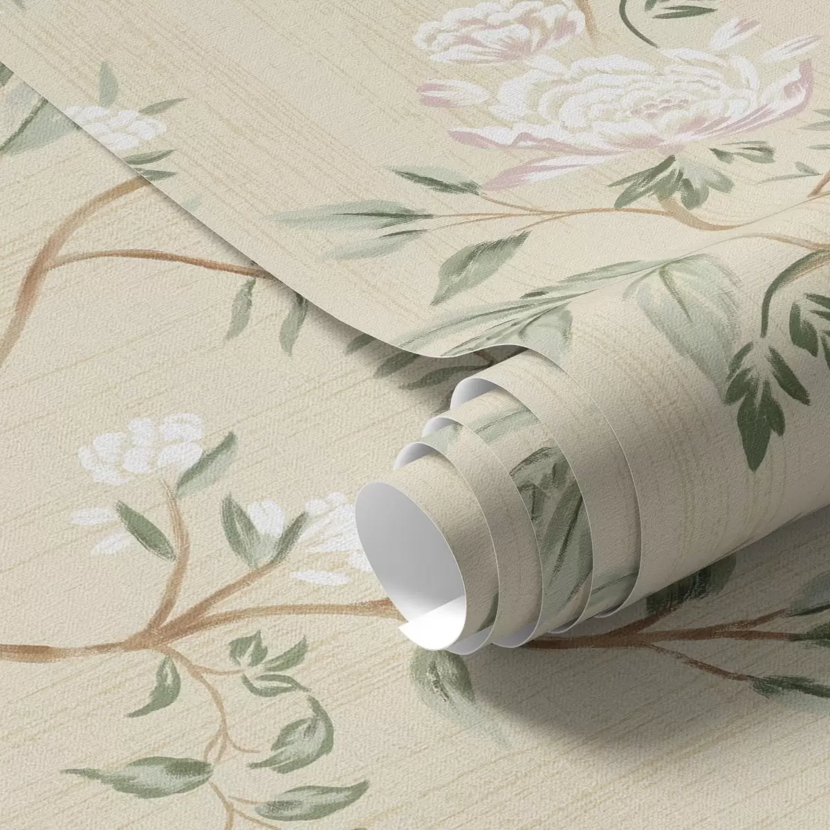 Fonds d'écran Branches délicates ornées de fleurs sur fond crème chaud Nr. a01084