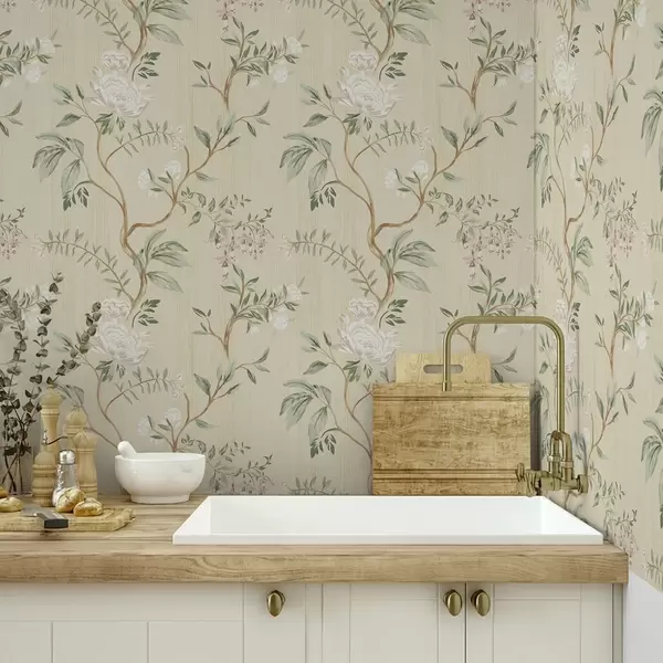 Fonds d'écran Branches délicates ornées de fleurs sur fond crème chaud Nr. a01084