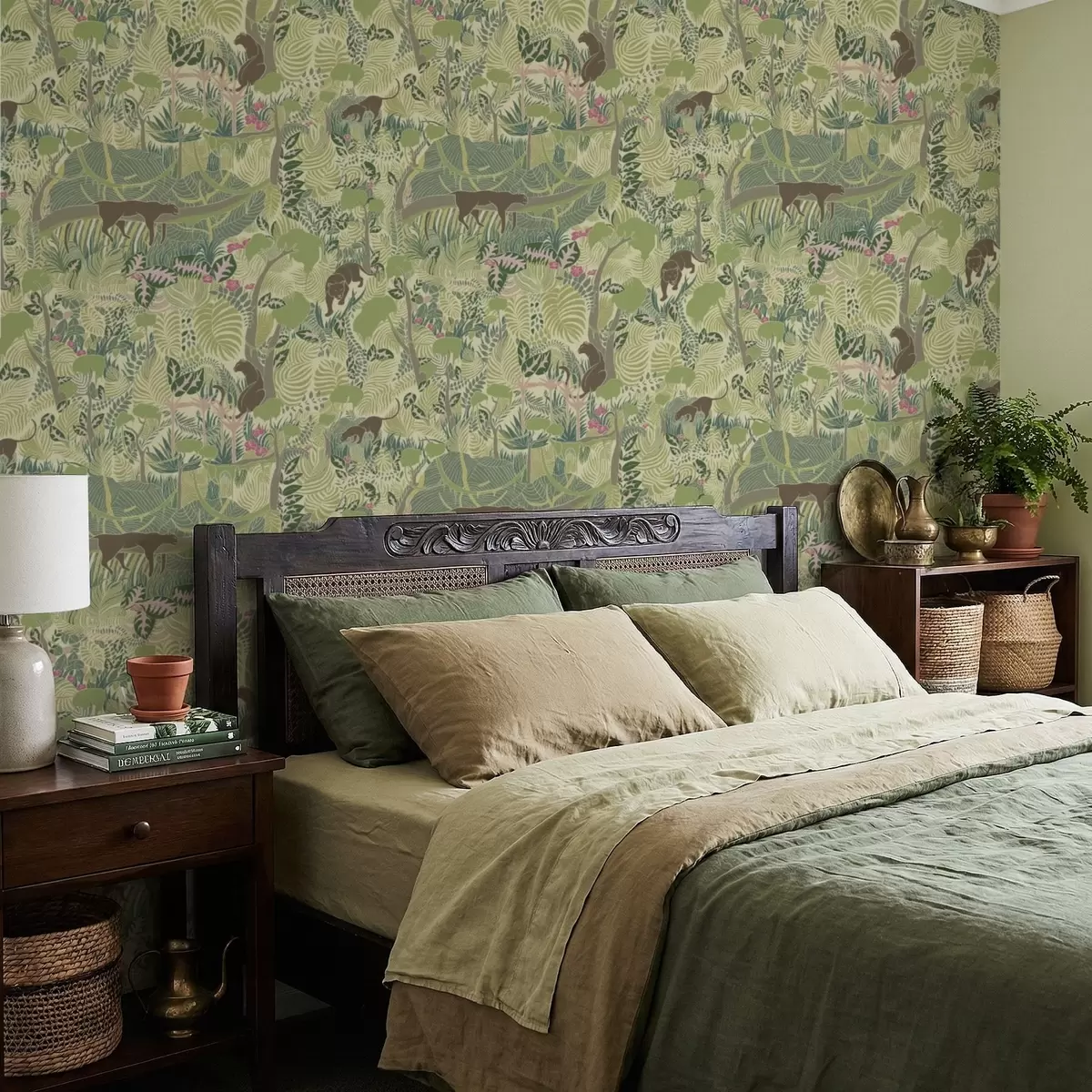 Fonds d'écran Scène forestière avec des animaux et un feuillage dense Nr. a01108